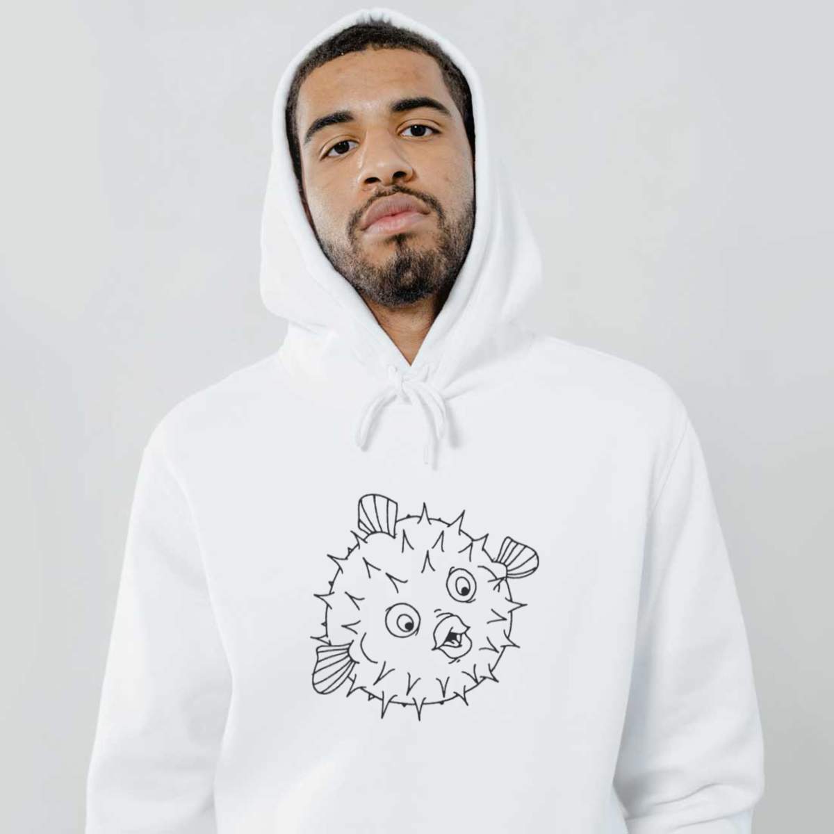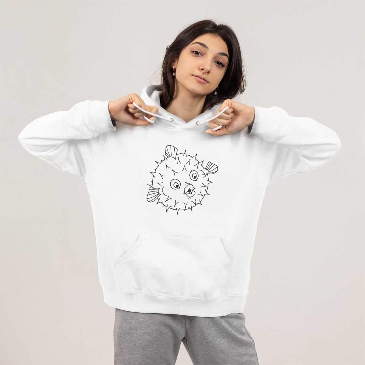 Small 'Puffer Fish' Adult Hoodie / Hooded Sweater (White) (HO00023553)