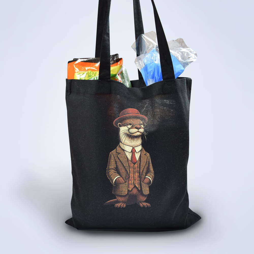 'Smart Otter Wearing a Suit' Classic Black Tote Shopper Bag (ZB00023327)