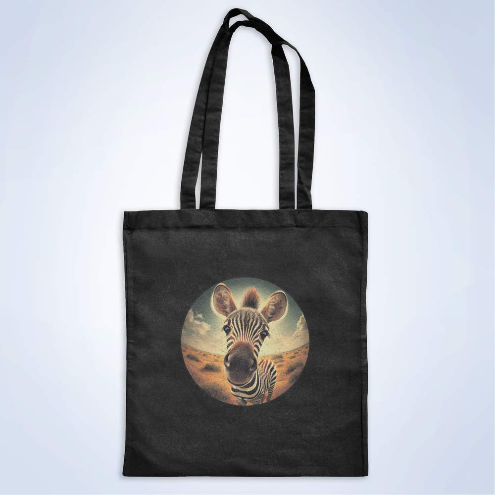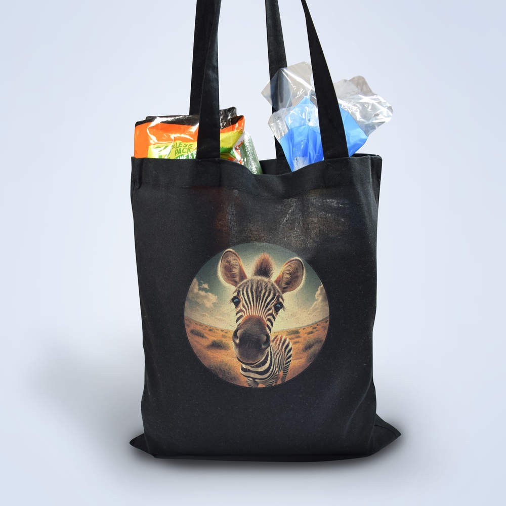 'Smiling Baby Zebra' Classic Black Tote Shopper Bag (ZB00024648)