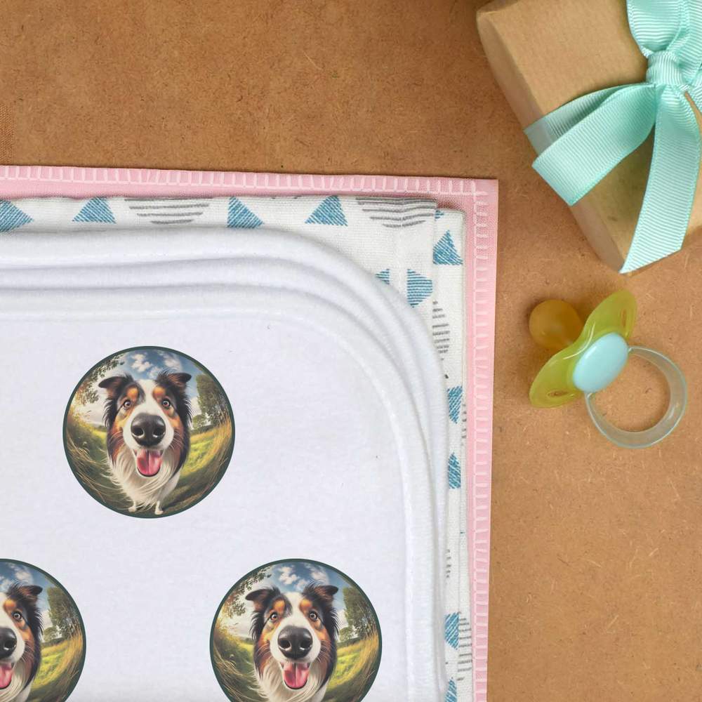 'Smiling Border Collie' Baby Burp / Wash Cloth (BC00031016)