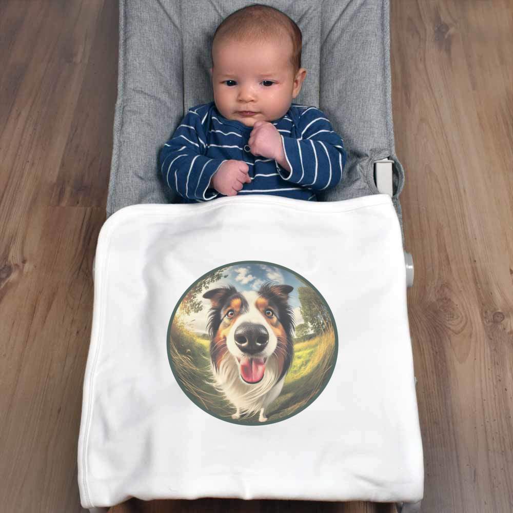 'Smiling Border Collie' Cotton Baby Blanket / Shawl (BY00039750)