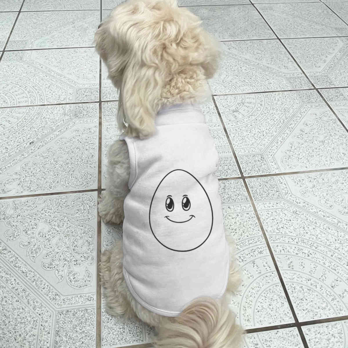 Give your furry friend a fresh new look with this adorable white dog T-shirt, designed to turn heads with its unique print on the back! Made from 100% polyester, it offers a comfortable yet firm stretch, perfect for both playtime adventures and cozy cuddles. Whether your dog loves to play outdoors or cuddle indoors, this T-shirt provides all-day comfort and style.
