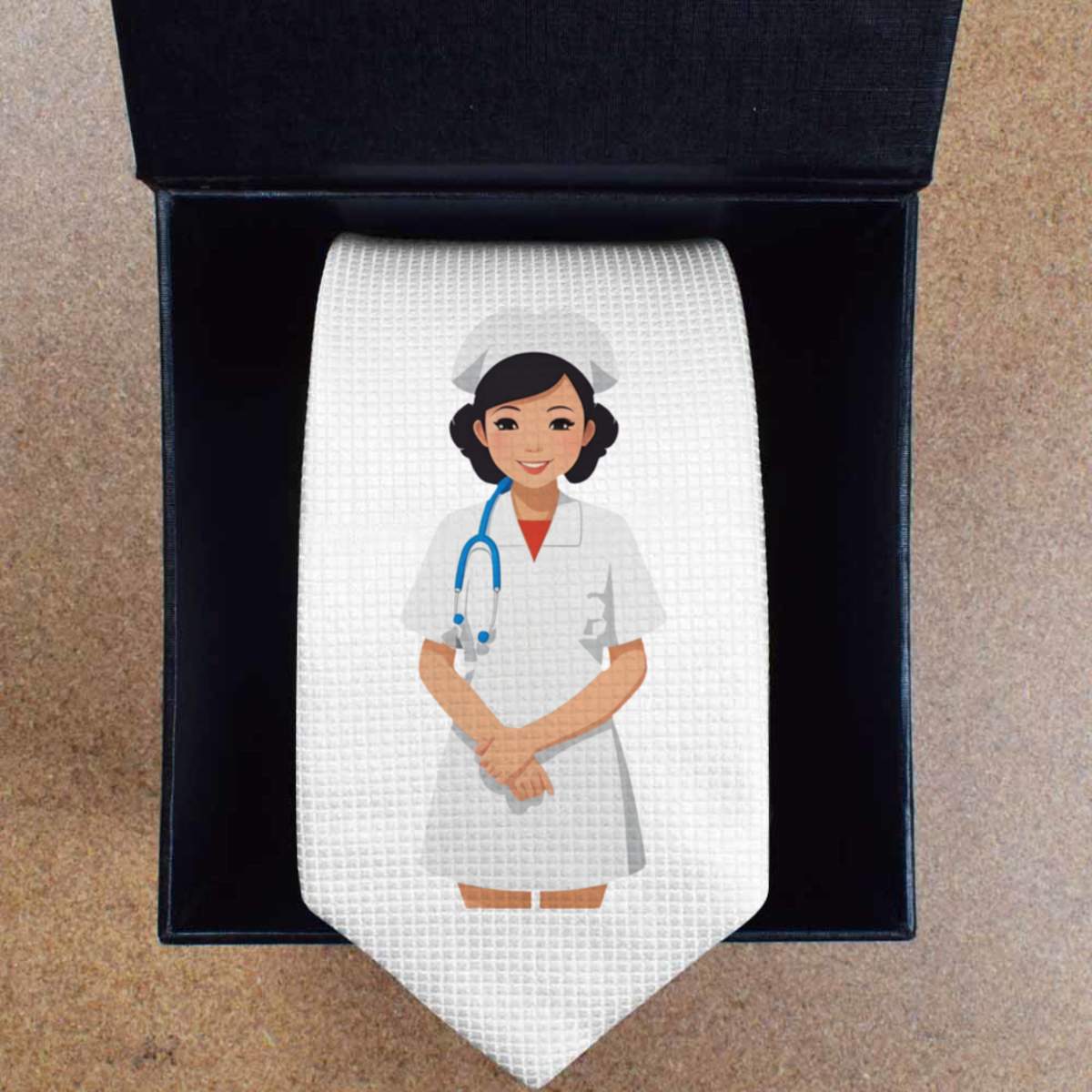 'Smiling Nurse' White Tie / Necktie with Gift Box (AT00016465)
