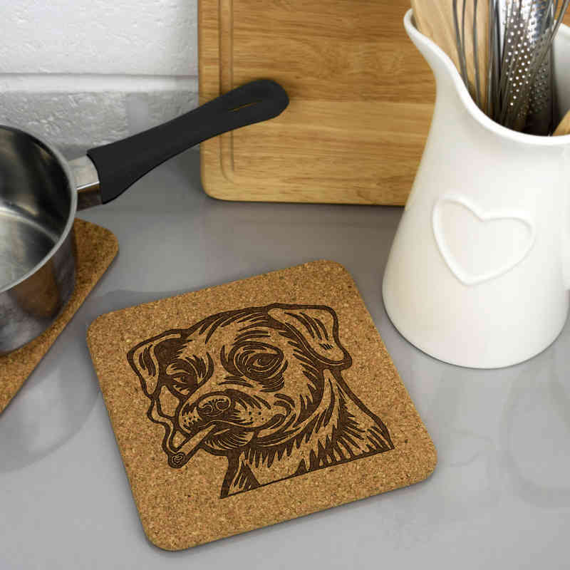 This wonderful square cork trivet / mat is a great addition to any kitchen. The cork is naturally non-slip and resistant to heat making it the perfect material to protect your kitchen worktops. Engraved on one side with a unique design, this product would make a fantastic gift and homeware essential.