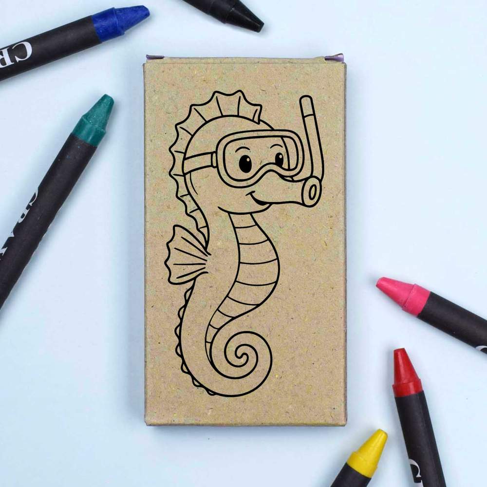 - A set of 6 vibrant colouring crayons with a handy storage box