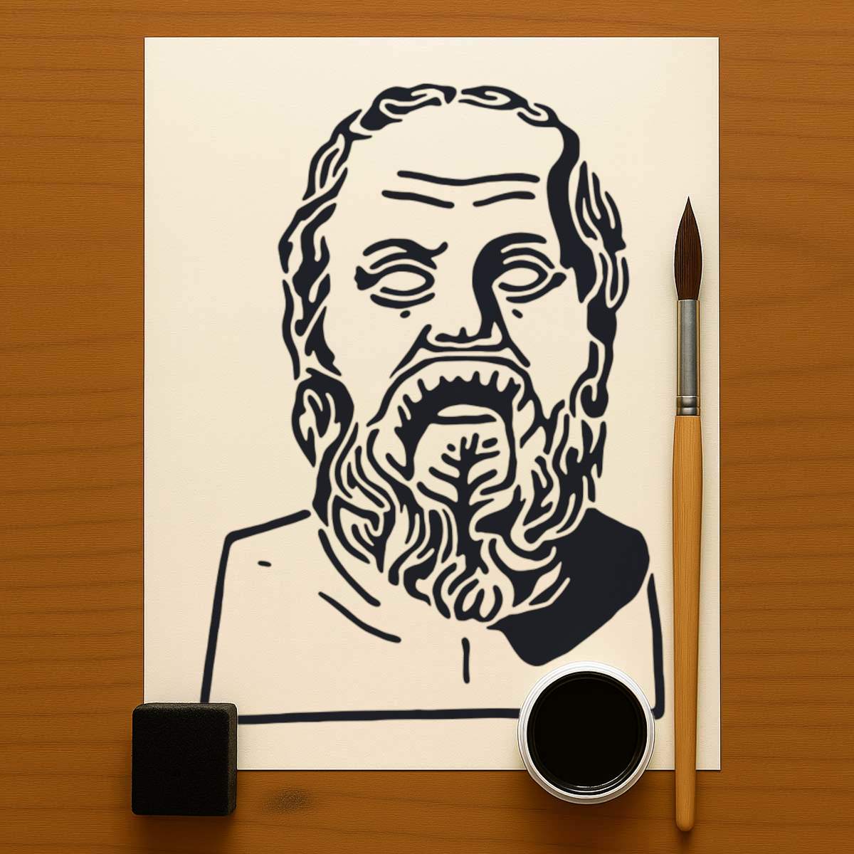 'Socrates Portrait' Reusable Stencil – Durable Decorative Template for Painting and Spraying on Walls, Tiles, Wood, Fabric & Craft Projects - M (A5) (WS00031572)