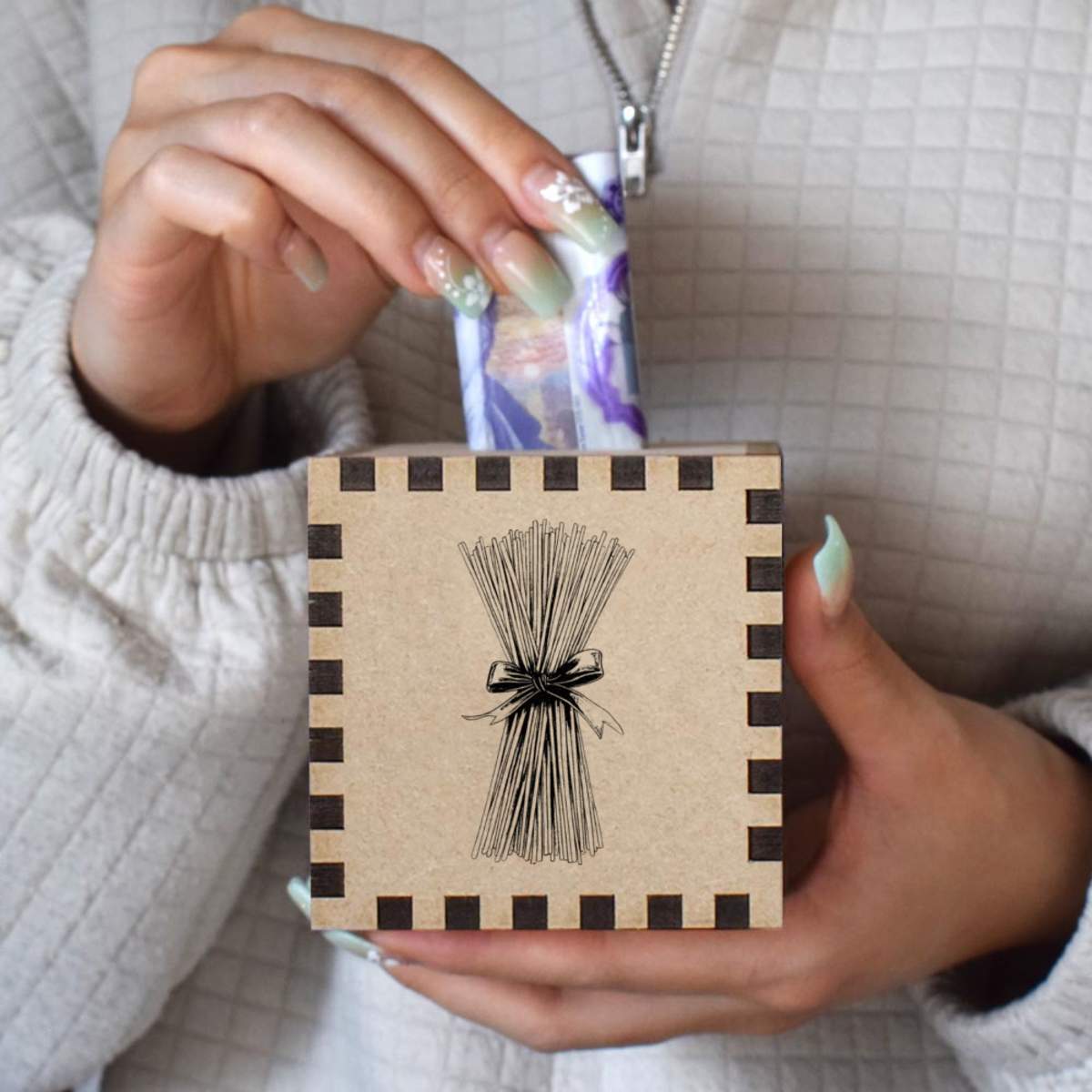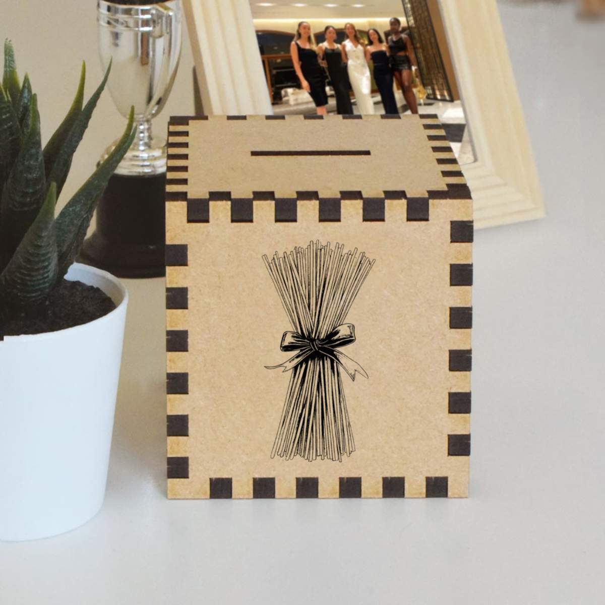 An 8.5cm wooden money box made out of the finest quality MDF and printed on all four sides with a unique design. The bottom is flat and the top has a slot for coins, the box itself is 85mm on each side, with a 35mm x 5mm coin slot, so please be sure it's suitable for you.