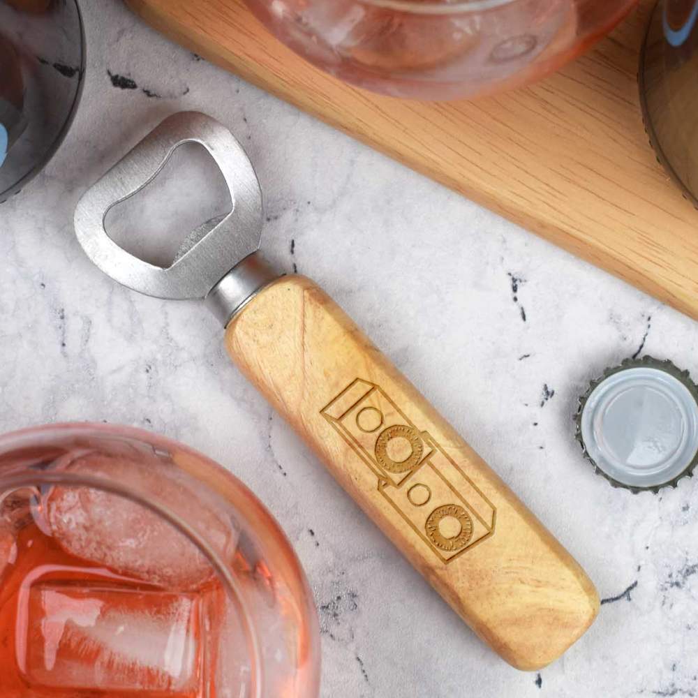 This beautiful wooden bottle opener is made from high quality beech wood and is engraved on one side with a unique design. It's practically sized for pockets and easily wiped clean, making it great for outdoor adventures and travelling.