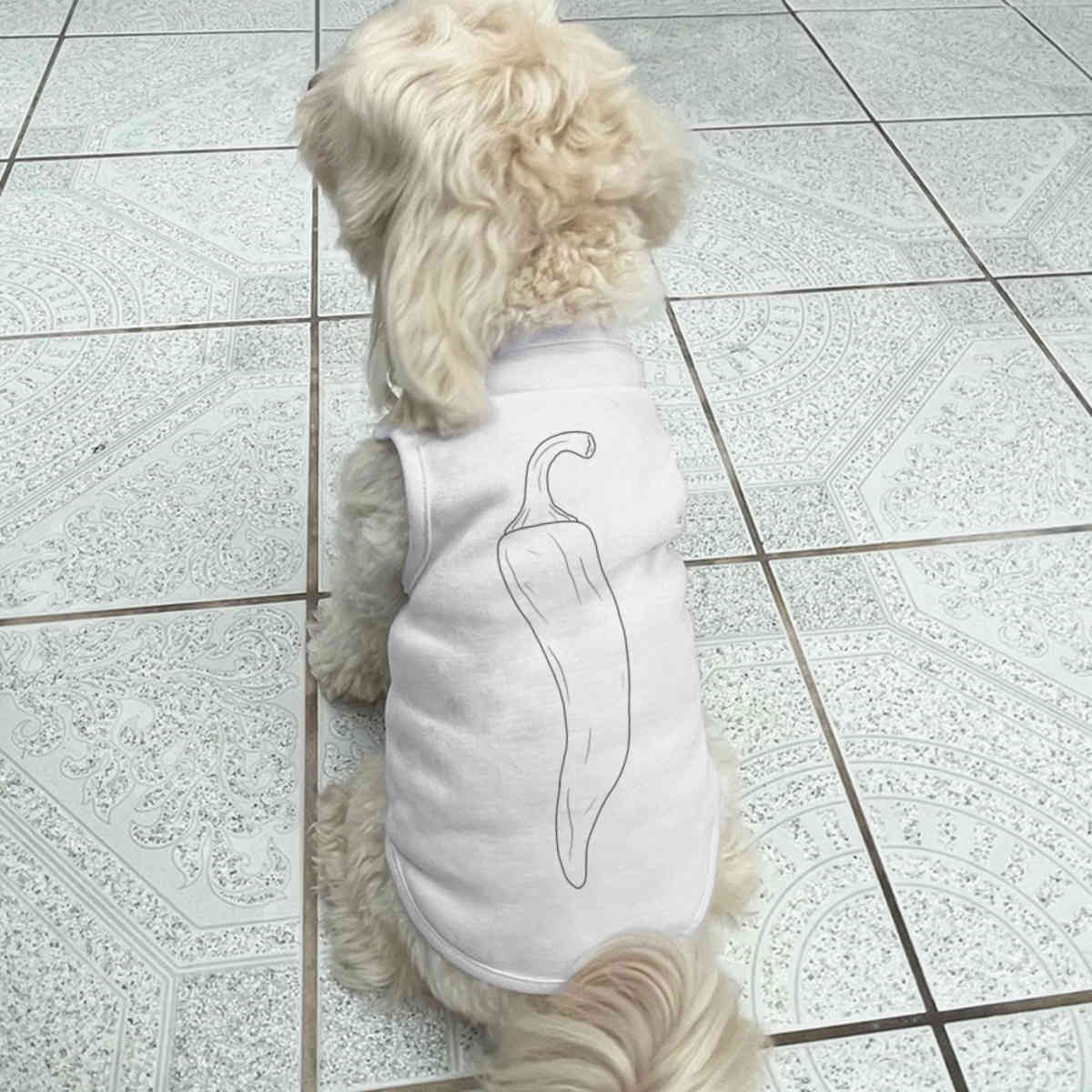 Give your furry friend a fresh new look with this adorable white dog T-shirt, designed to turn heads with its unique print on the back! Made from 100% polyester, it offers a comfortable yet firm stretch, perfect for both playtime adventures and cozy cuddles. Whether your dog loves to play outdoors or cuddle indoors, this T-shirt provides all-day comfort and style.