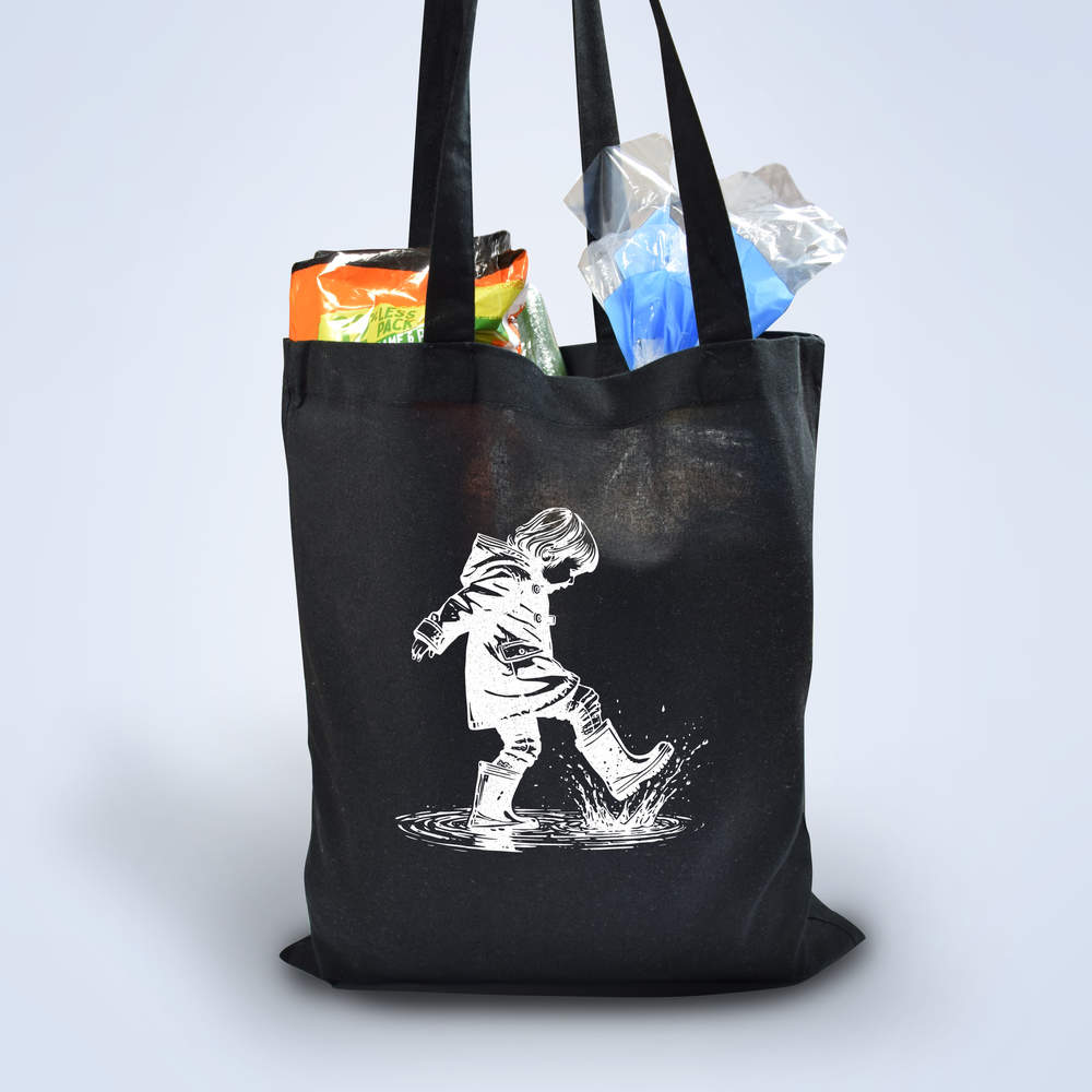 'Splashing In Puddles' Classic Black Tote Shopper Bag (ZB00022902)