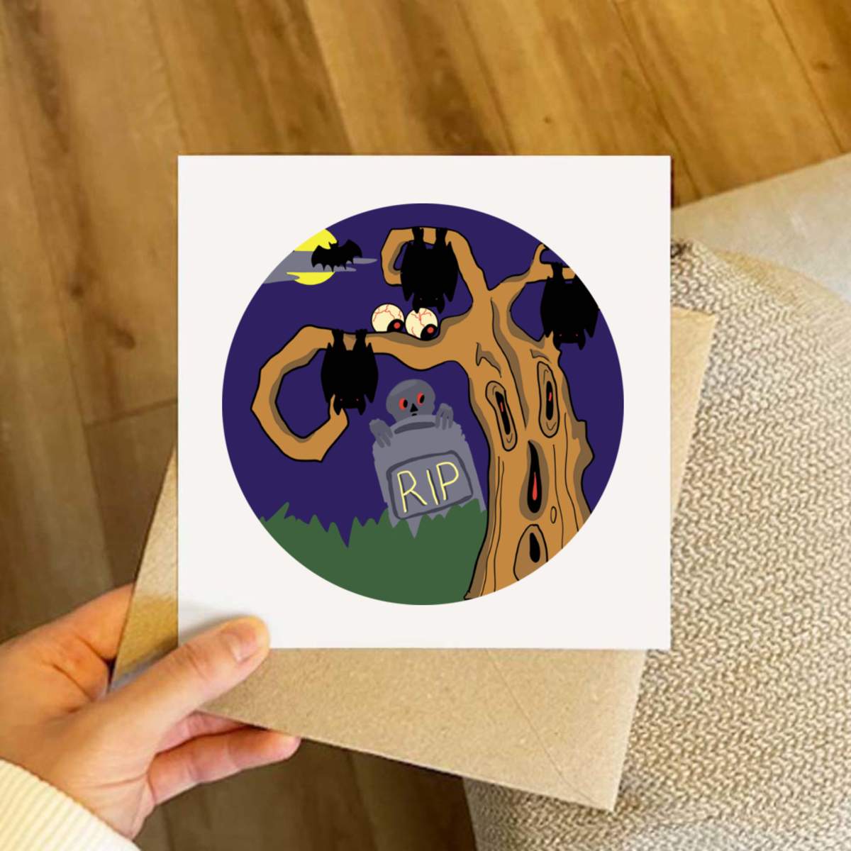 - Square greeting card supplied with a recycled brown envelope