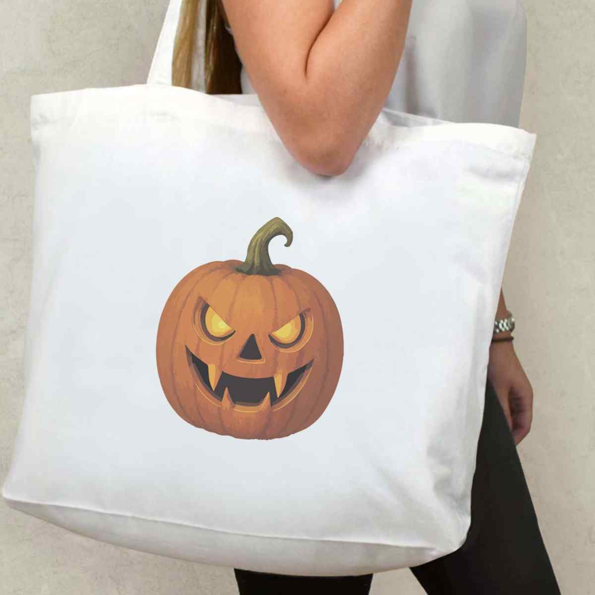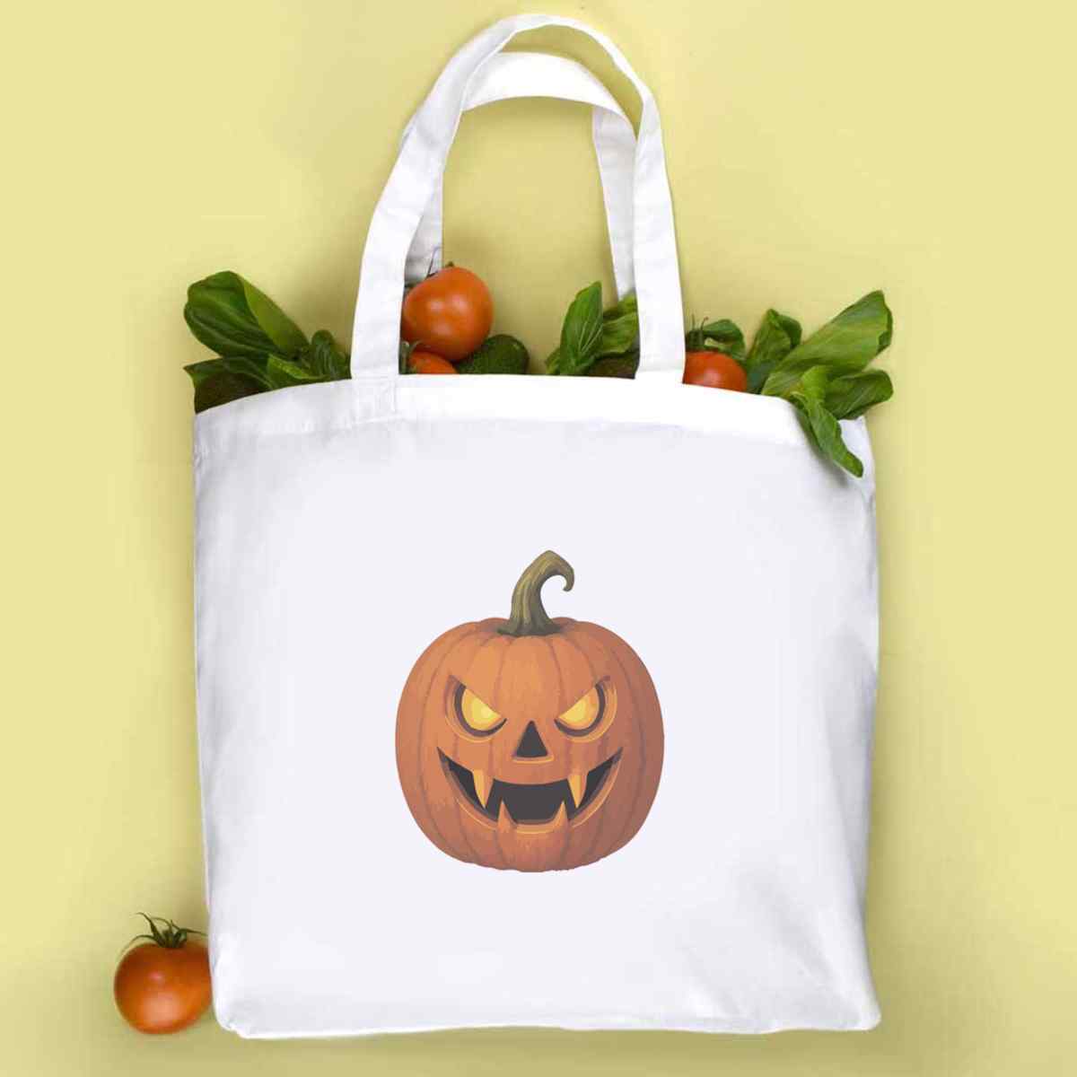'Spooky Vampire Pumpkin Jack-O'-Lantern' Tote Shopping Bag For Life (BG00086754)