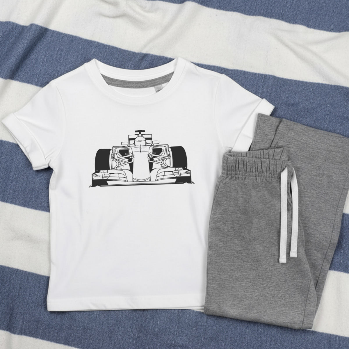 'Sports Race Car' Kids Cotton Pyjama Set – Comfortable Children's Nightwear, Sleepwear and Loungewear - Unisex for Boys and Girls - Grey, 9-10 Years (KP00074227)
