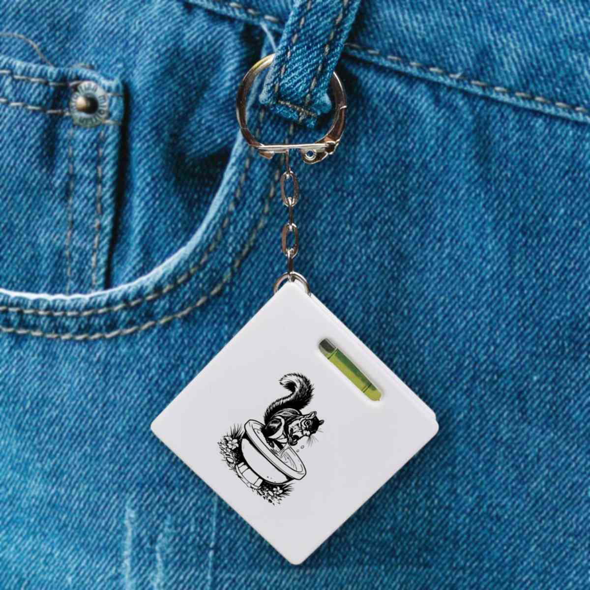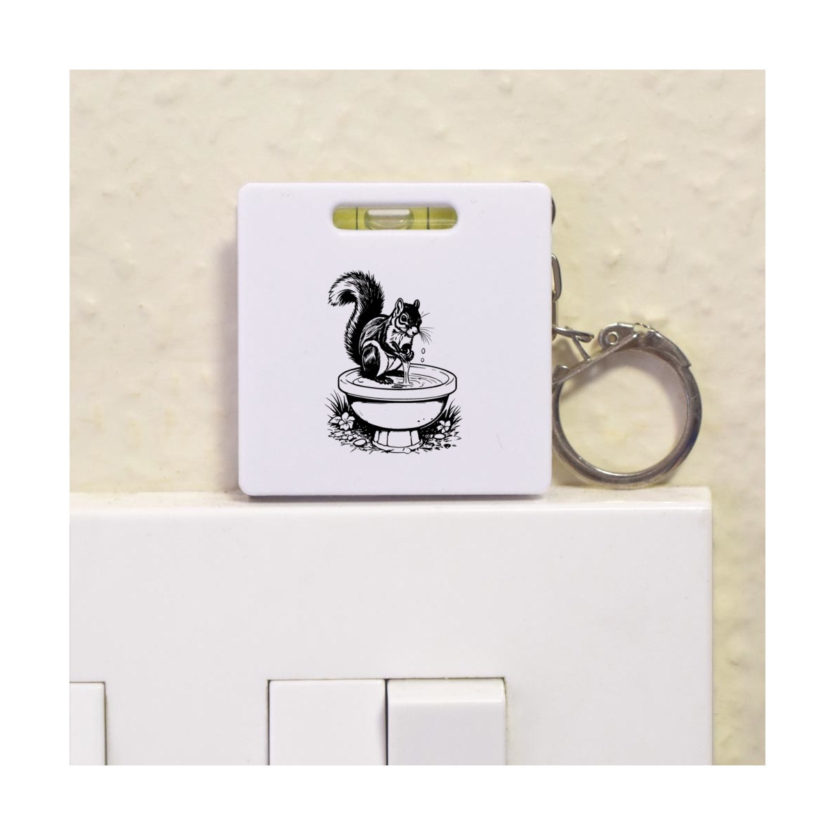 This multifunctional tool offers both a tape measure and spirit level in one handy little accessory. The retractable, 1 metre tape measure has both imperial and metric units, while the flat edges around its plastic casing provide the ability to check both vertical and horizontal surfaces with a mini spirit level. The compact and lightweight design makes it easy to carry around; simply attach with the keychain provided and whip it out when needed. Each keyring tape measure tool is printed on one side with a unique design.