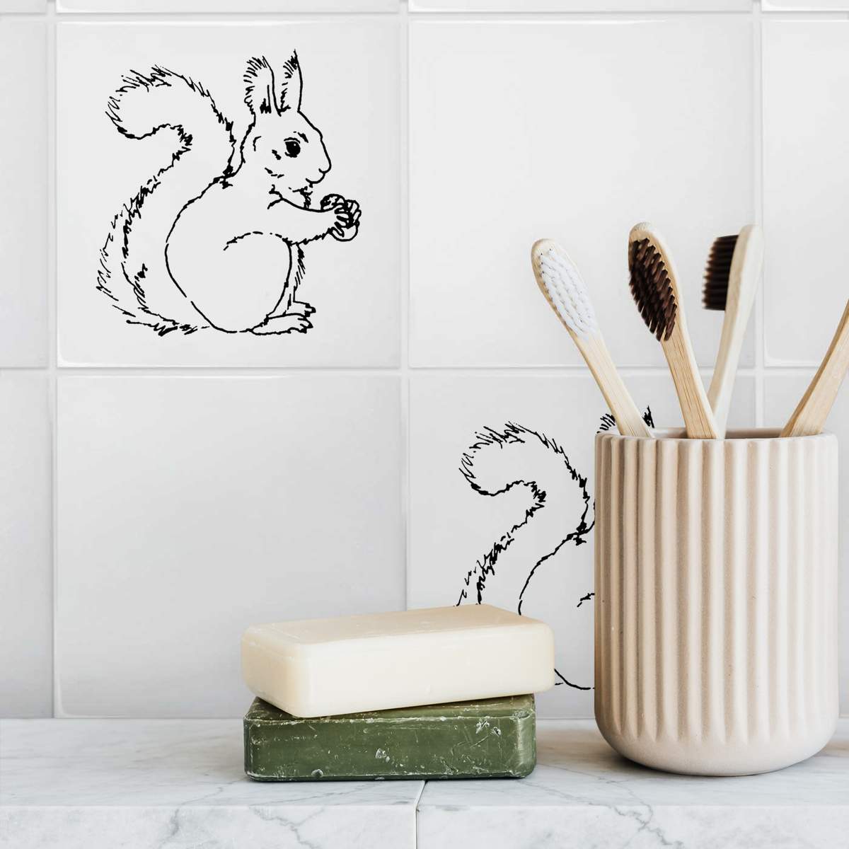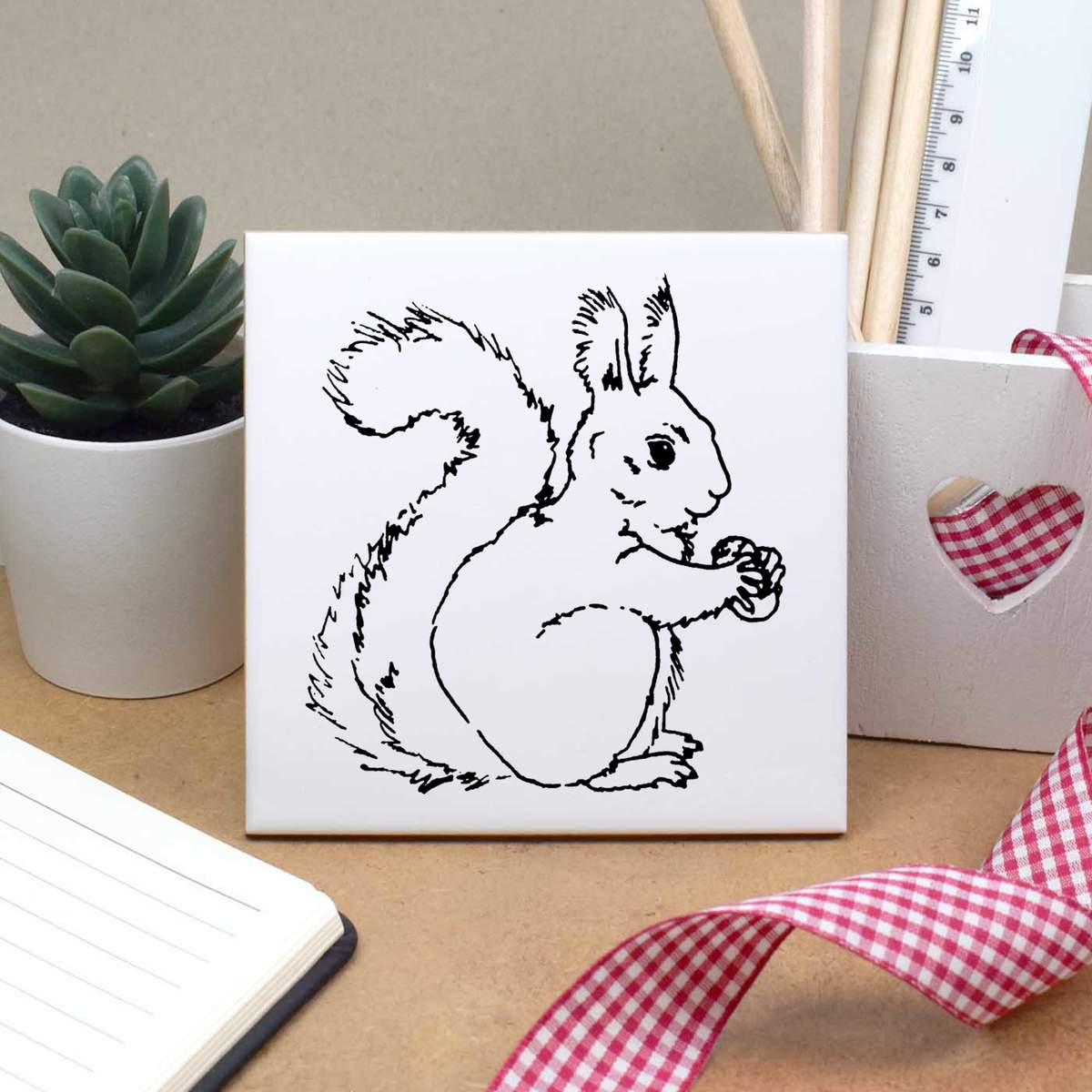 'Squirrel With Nut' 108mm Square Ceramic Tile (TD00003090)