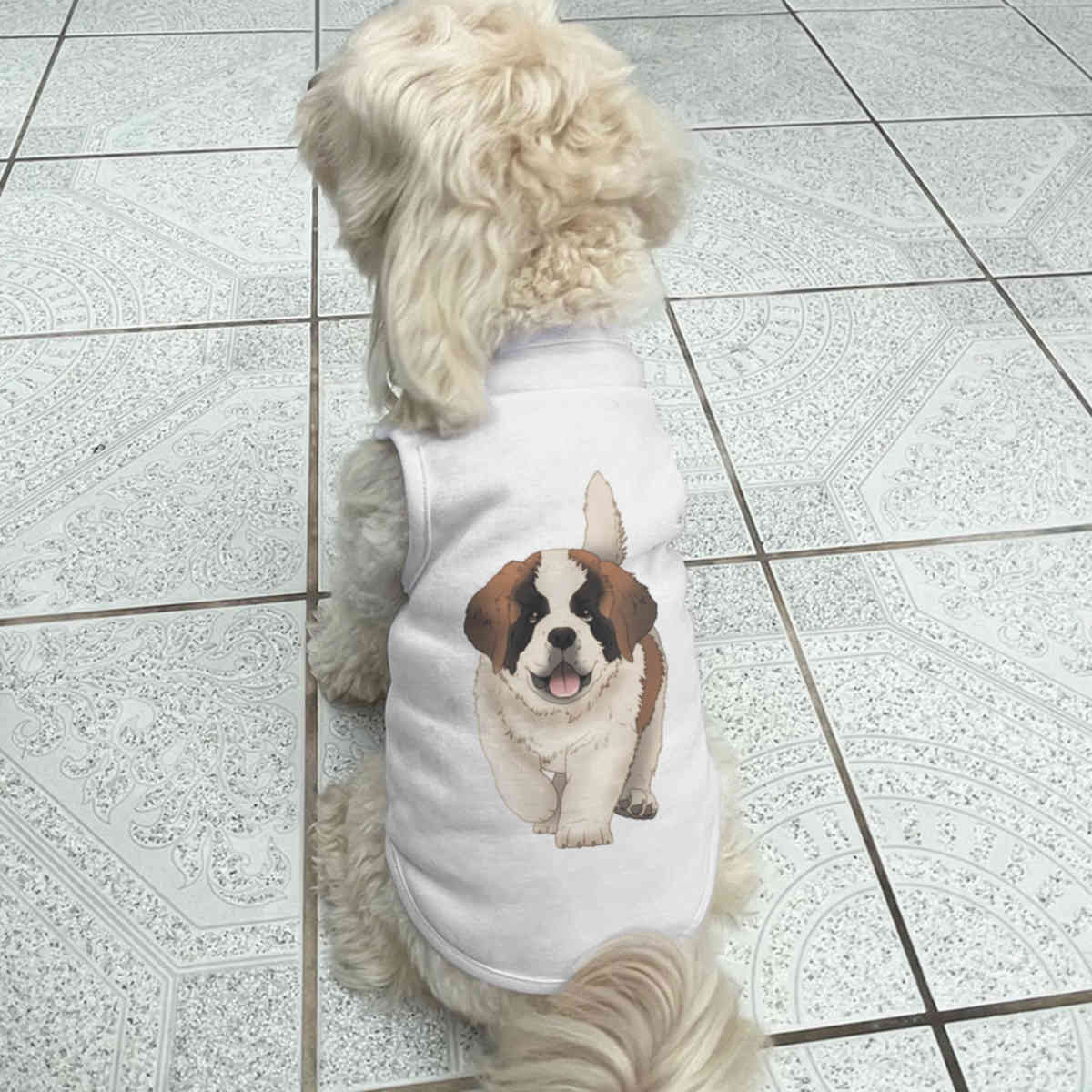 Give your furry friend a fresh new look with this adorable white dog T-shirt, designed to turn heads with its unique print on the back! Made from 100% polyester, it offers a comfortable yet firm stretch, perfect for both playtime adventures and cozy cuddles. Whether your dog loves to play outdoors or cuddle indoors, this T-shirt provides all-day comfort and style.