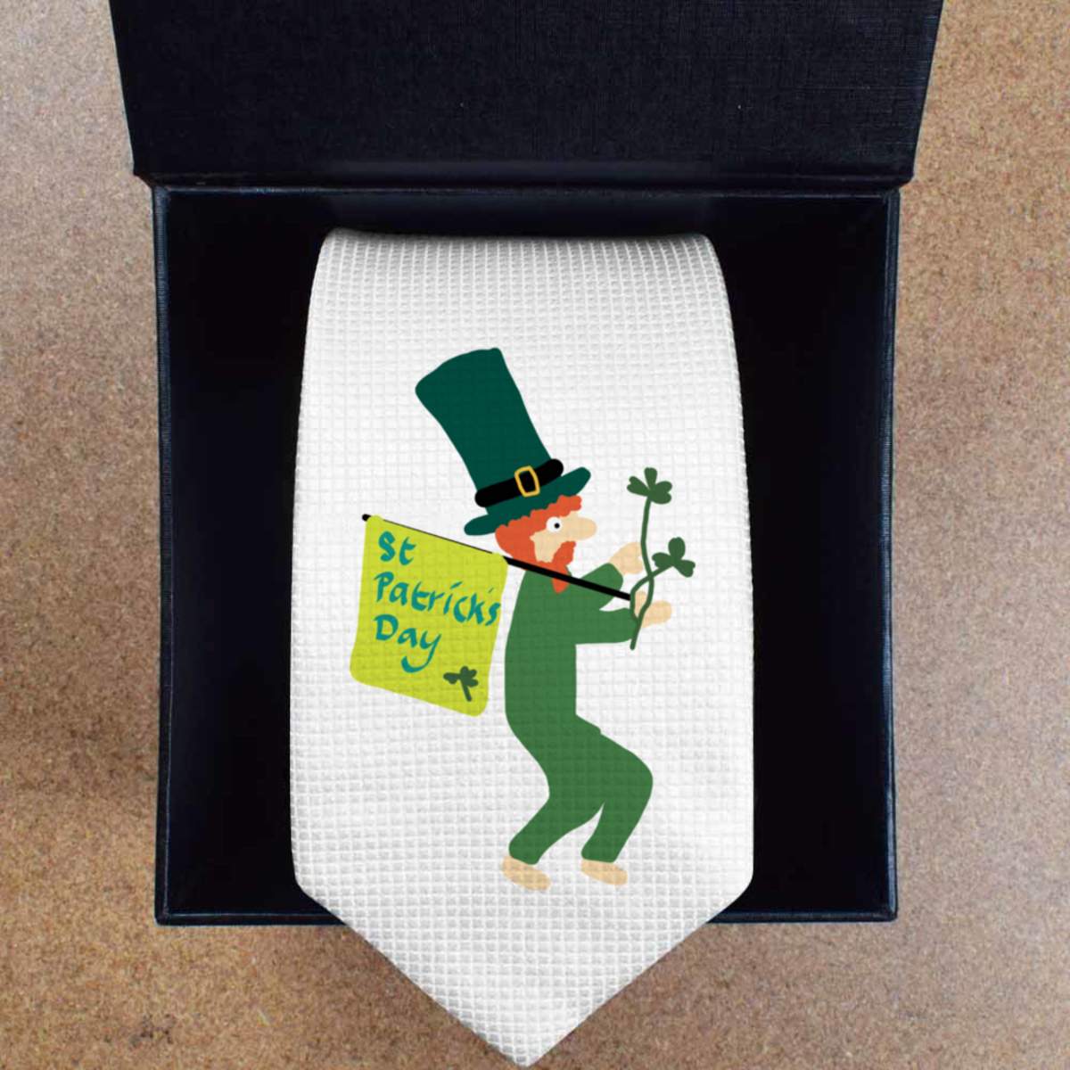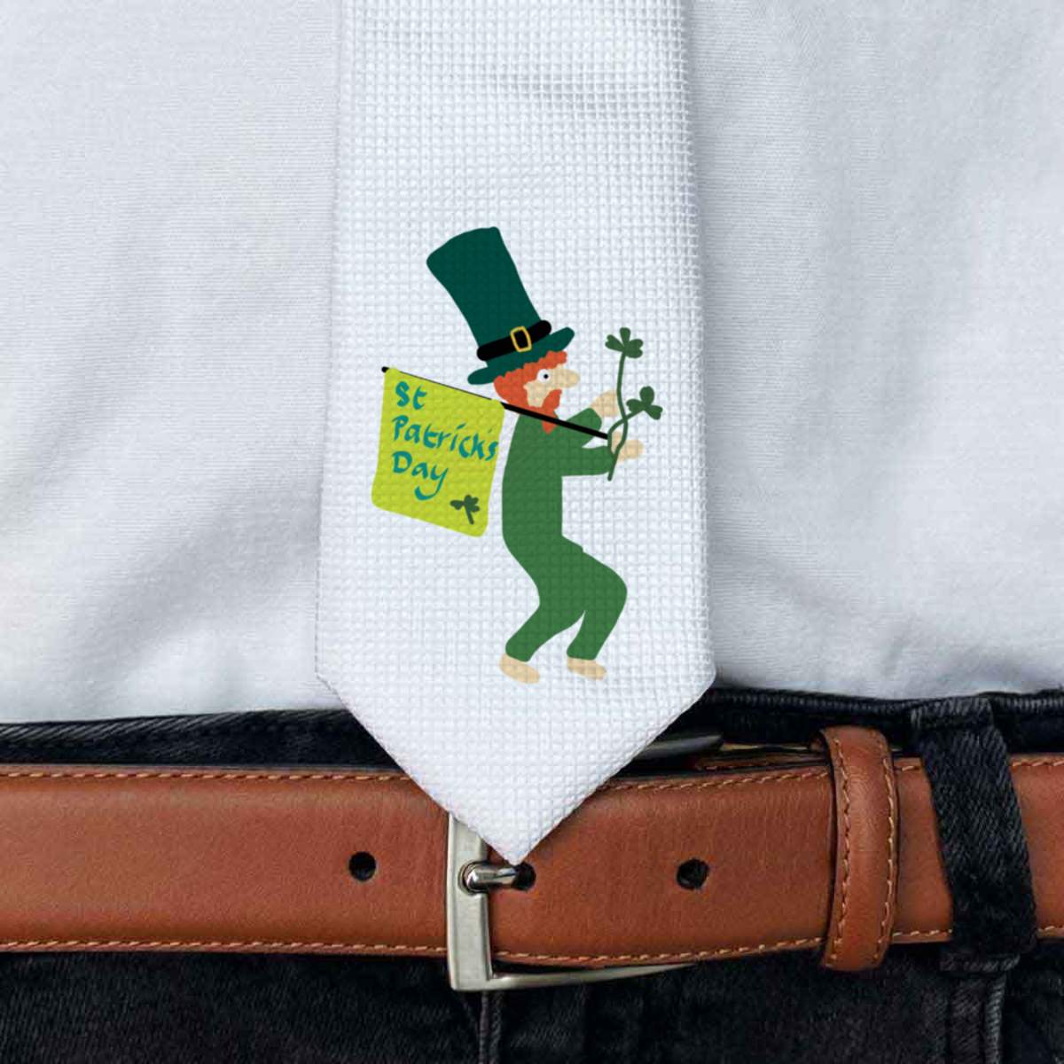 This stylish slim white tie is guaranteed to add class to any outfit. Printed on the front with a design from one of our talented designers, these ties are perfect for formal events, special occasions or making a statement at the office.