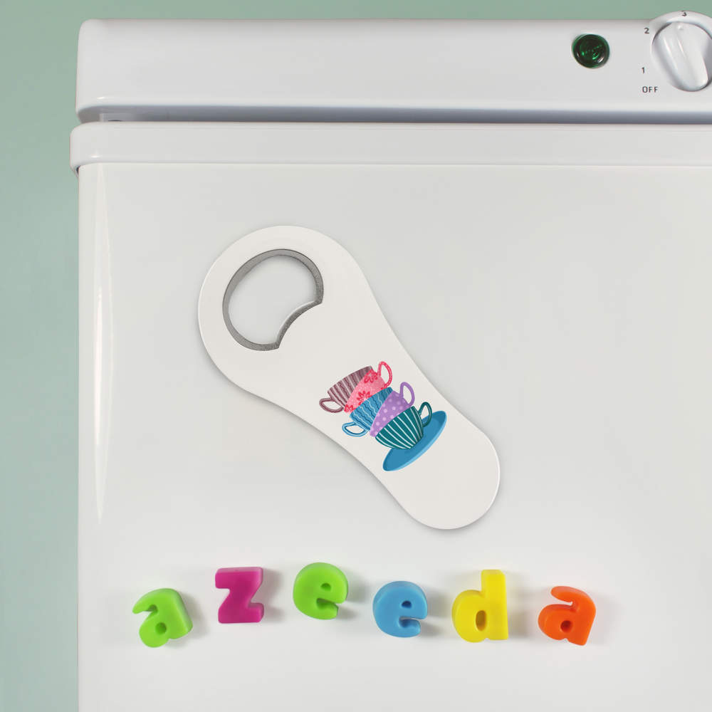 'Stacked Teacups' Bottle Opener Fridge Magnet (BO00092018)