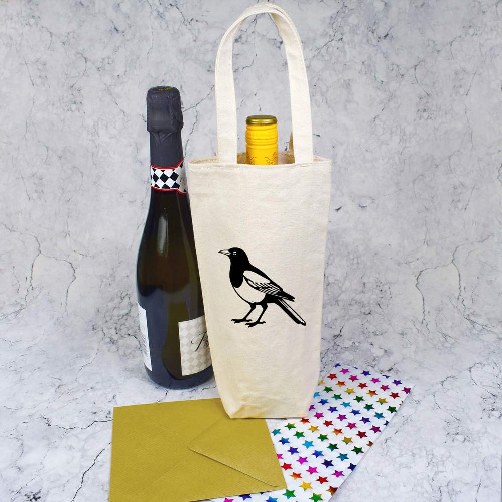 Give a gift in style with this wonderful wine bottle bag. Printed one side with a unique design, this bag oozes with class. Each one is made from thick natural canvas and its high quality finish means it can be used again and again; perfect for picnics and adventures where a bottle of the finest wine is required. This bottle bag can comfortably carry a single standard wine or champagne bottle, up to 1.5 litres, but please check the bag dimensions are suitable before purchasing.