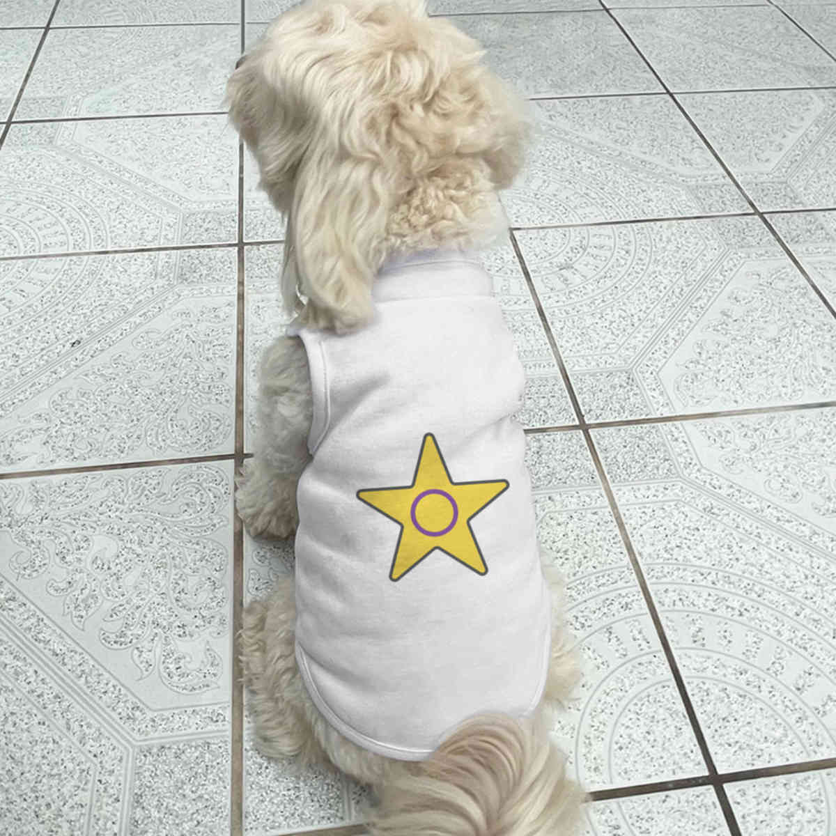 Give your furry friend a fresh new look with this adorable white dog T-shirt, designed to turn heads with its unique print on the back! Made from 100% polyester, it offers a comfortable yet firm stretch, perfect for both playtime adventures and cozy cuddles. Whether your dog loves to play outdoors or cuddle indoors, this T-shirt provides all-day comfort and style.