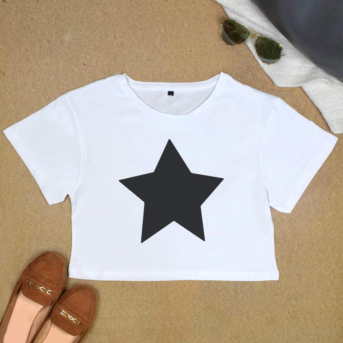 'Women's, Crop Top, White, Crew neck, Cropped'