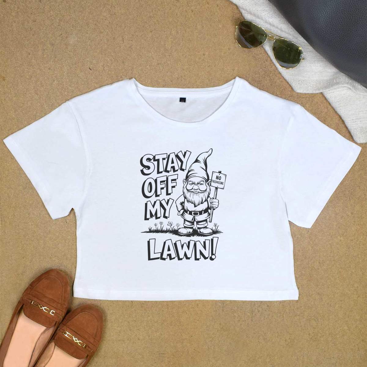 'Garden Gnome, Stay Off My Lawn, Defiant Gnome, Sassy, Garden, Humorous Graphic, No Trespassing, Outdoor Lover Gift, Comic Style, Funny Garden Gift, Gnome Lover, Lawn Care, Bold Typography, '