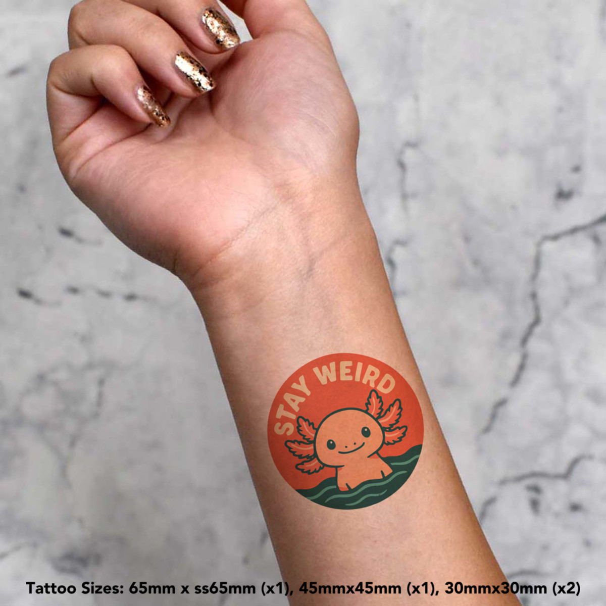 'Stay Weird Axolotl' Temporary Tattoos - Water Resistant, Skin-Safe, Non-Toxic Transfers (TO055786)