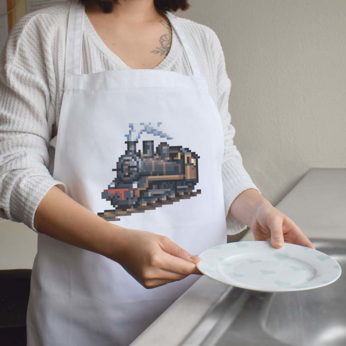 'Steam-powered Locomotive Train Pixel Art ' Unisex Cooking Apron (AP00062747)