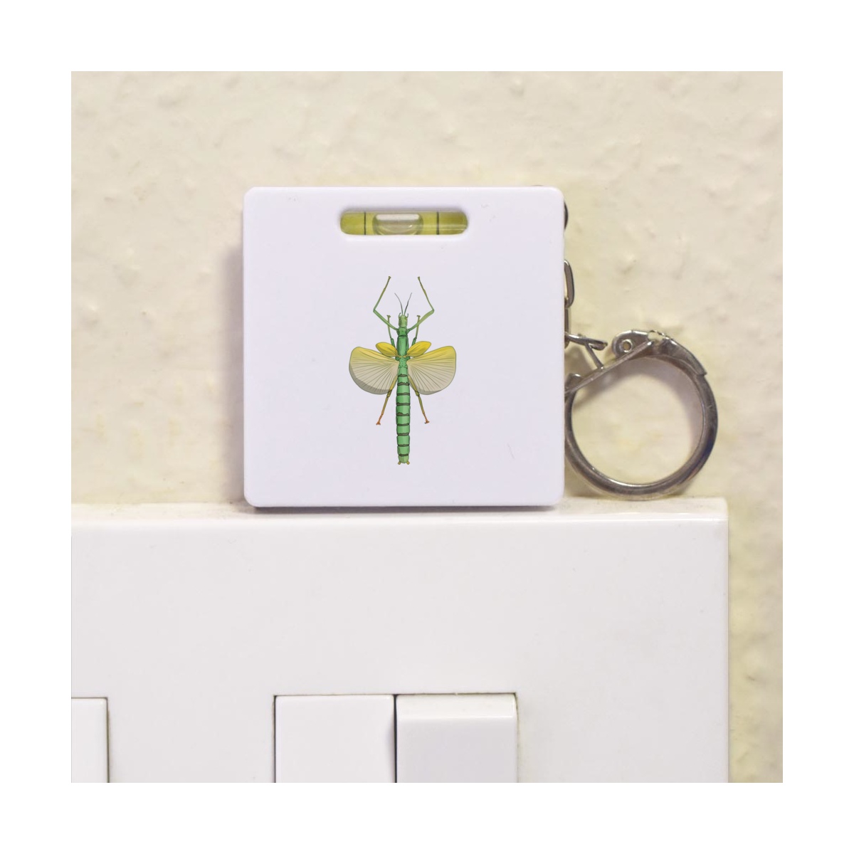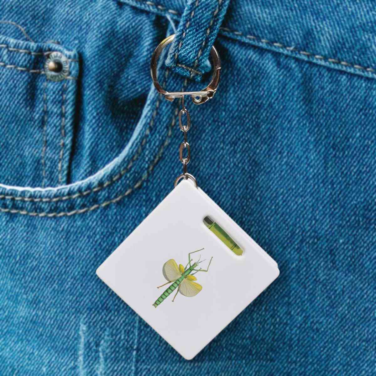 This multifunctional tool offers both a tape measure and spirit level in one handy little accessory. The retractable, 1 metre tape measure has both imperial and metric units, while the flat edges around its plastic casing provide the ability to check both vertical and horizontal surfaces with a mini spirit level. The compact and lightweight design makes it easy to carry around; simply attach with the keychain provided and whip it out when needed. Each keyring tape measure tool is printed on one side with a unique design.