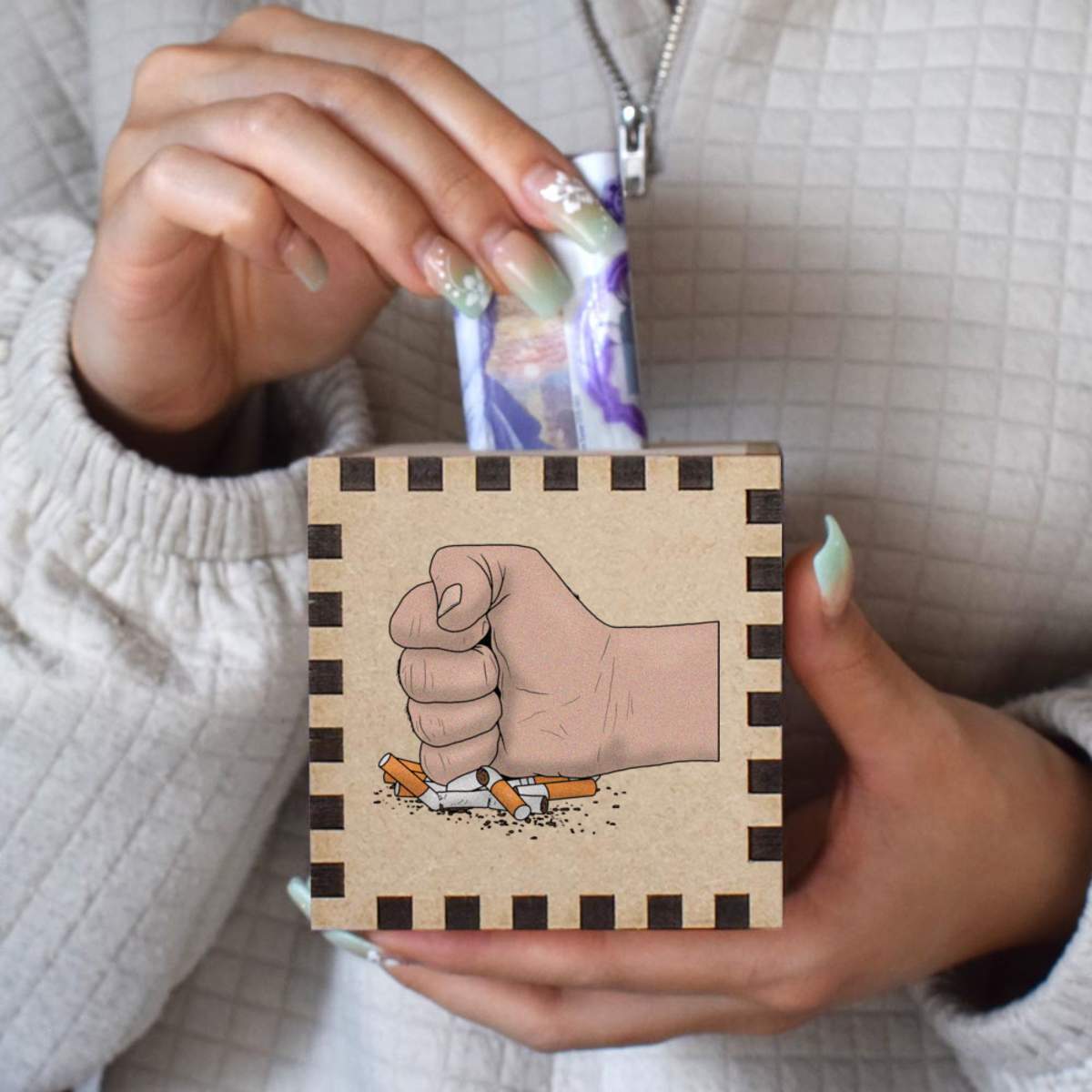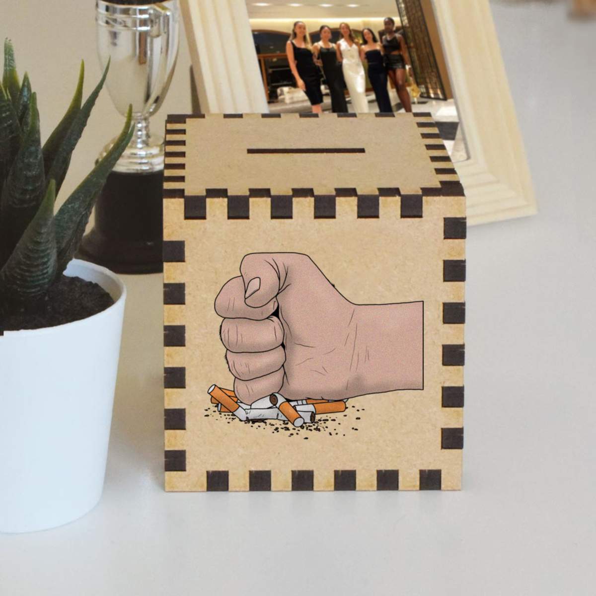 An 8.5cm wooden money box made out of the finest quality MDF and printed on all four sides with a unique design. The bottom is flat and the top has a slot for coins, the box itself is 85mm on each side, with a 35mm x 5mm coin slot, so please be sure it's suitable for you.