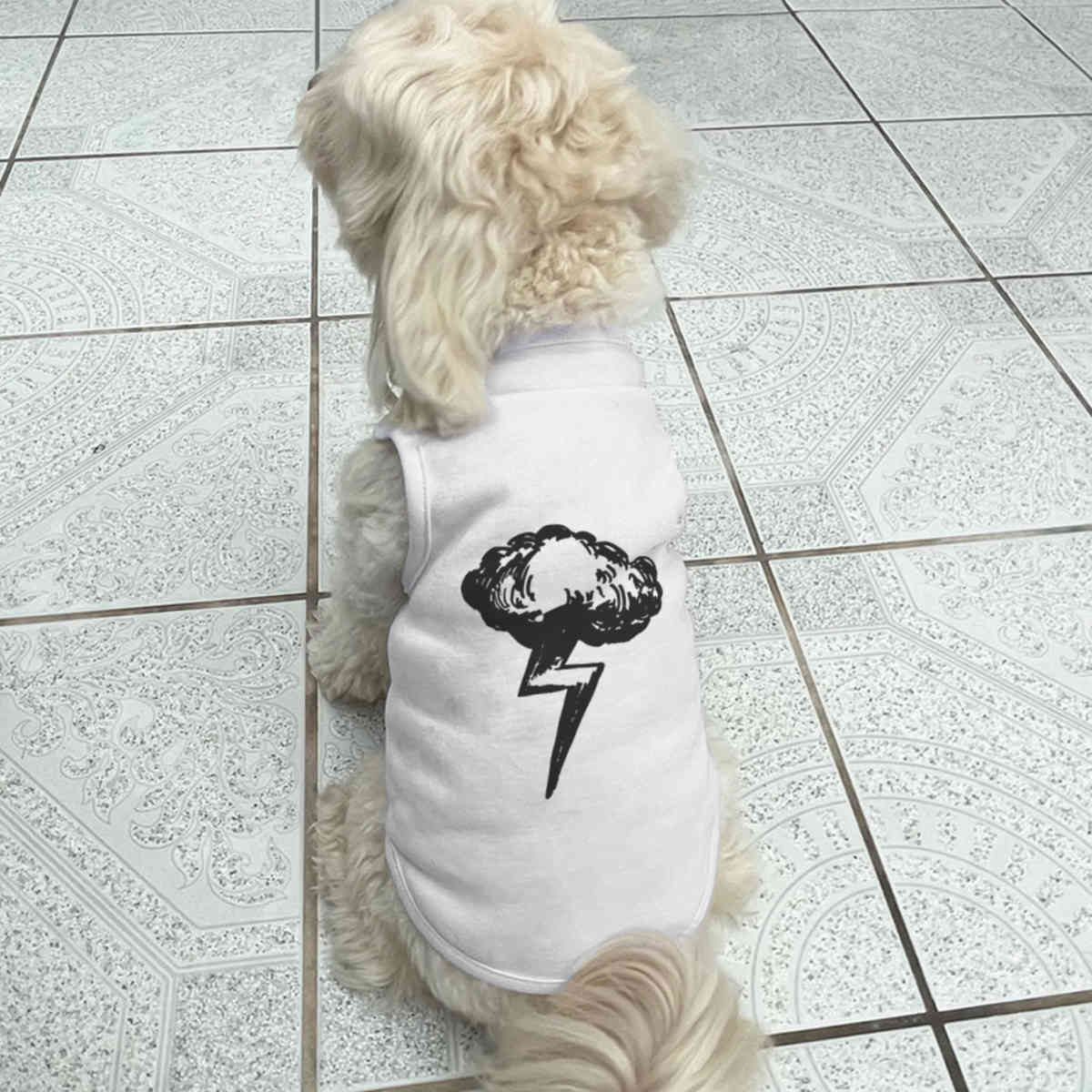 Give your furry friend a fresh new look with this adorable white dog T-shirt, designed to turn heads with its unique print on the back! Made from 100% polyester, it offers a comfortable yet firm stretch, perfect for both playtime adventures and cozy cuddles. Whether your dog loves to play outdoors or cuddle indoors, this T-shirt provides all-day comfort and style.