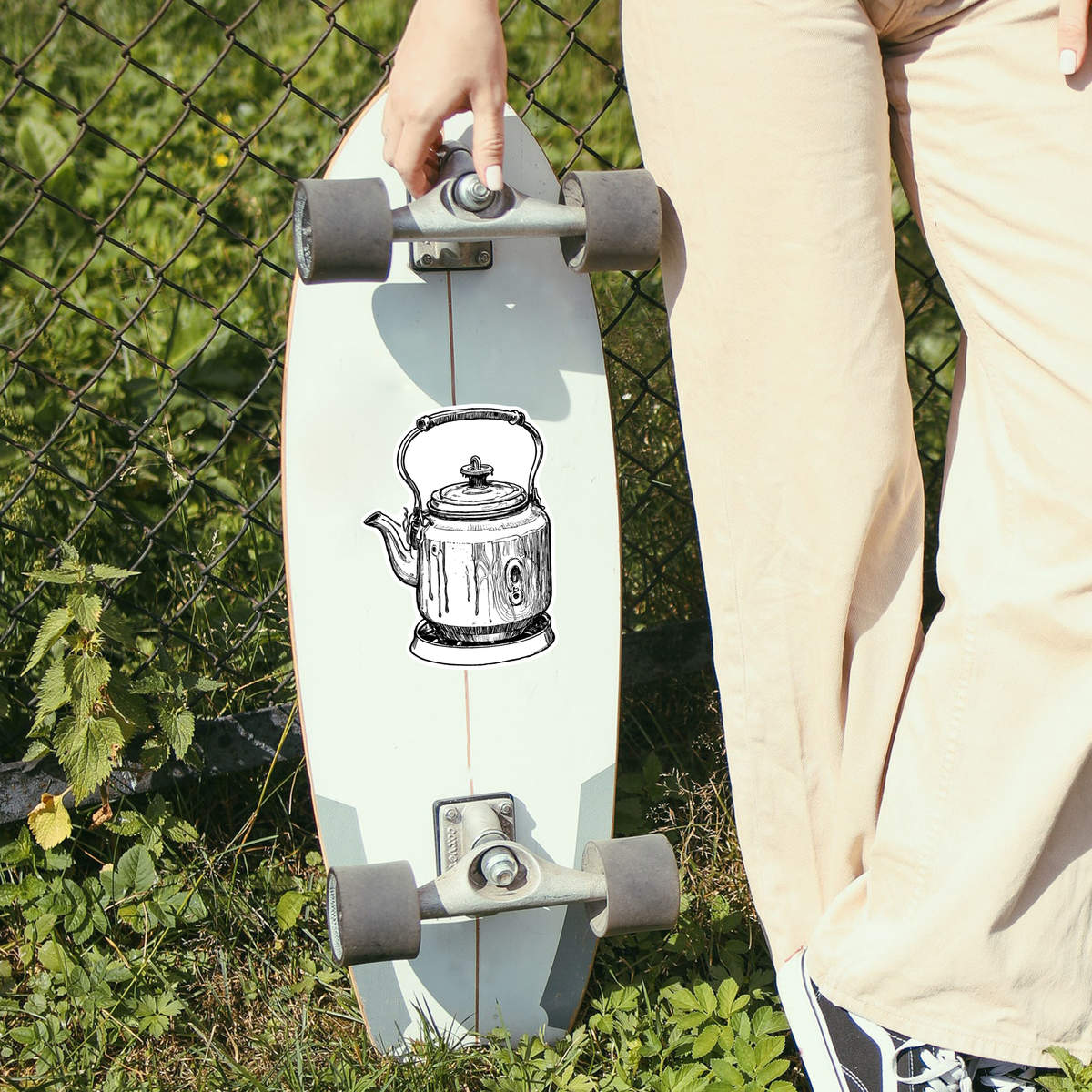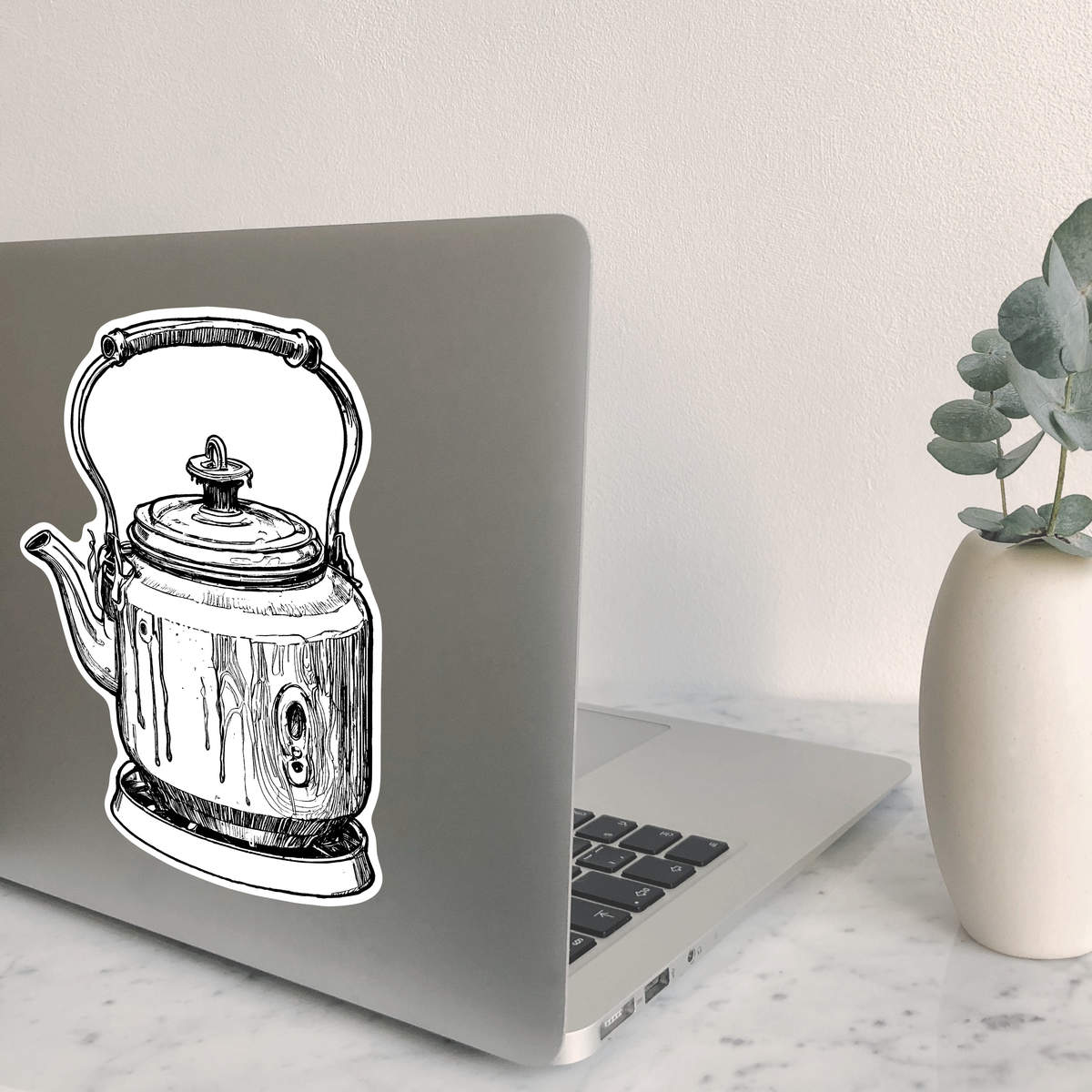 'Stove Top Kettle' White Premium Vinyl Decal Sticker – Waterproof, Durable & Easy to Apply - For Car Bumpers, Windows, Bins & More - Large (210mm) (DW00112838)