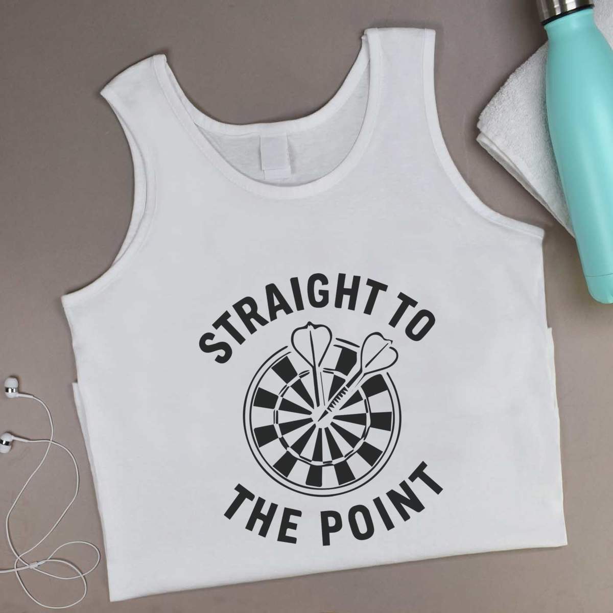 'A clever and vibrant design celebrating the accuracy of darts with a playful, pun-filled phrase.'