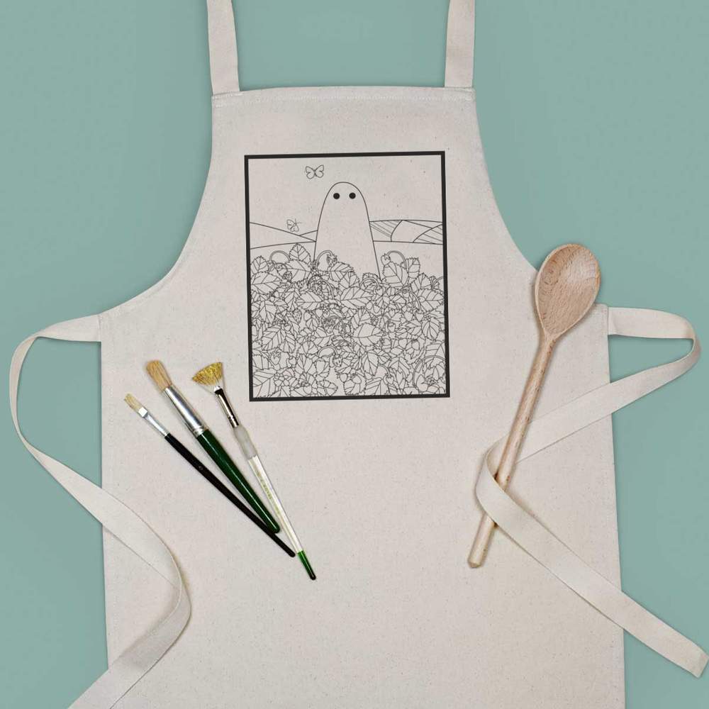 This apron can be used in the kitchen or for arts and crafts; perfect for little ones who love baking, painting or messy play. Our kid’s aprons are made from 100% cotton canvas and are printed on the front with a unique design. Each apron has a neck tie with hook and loop fastening and 60cm waist ties.