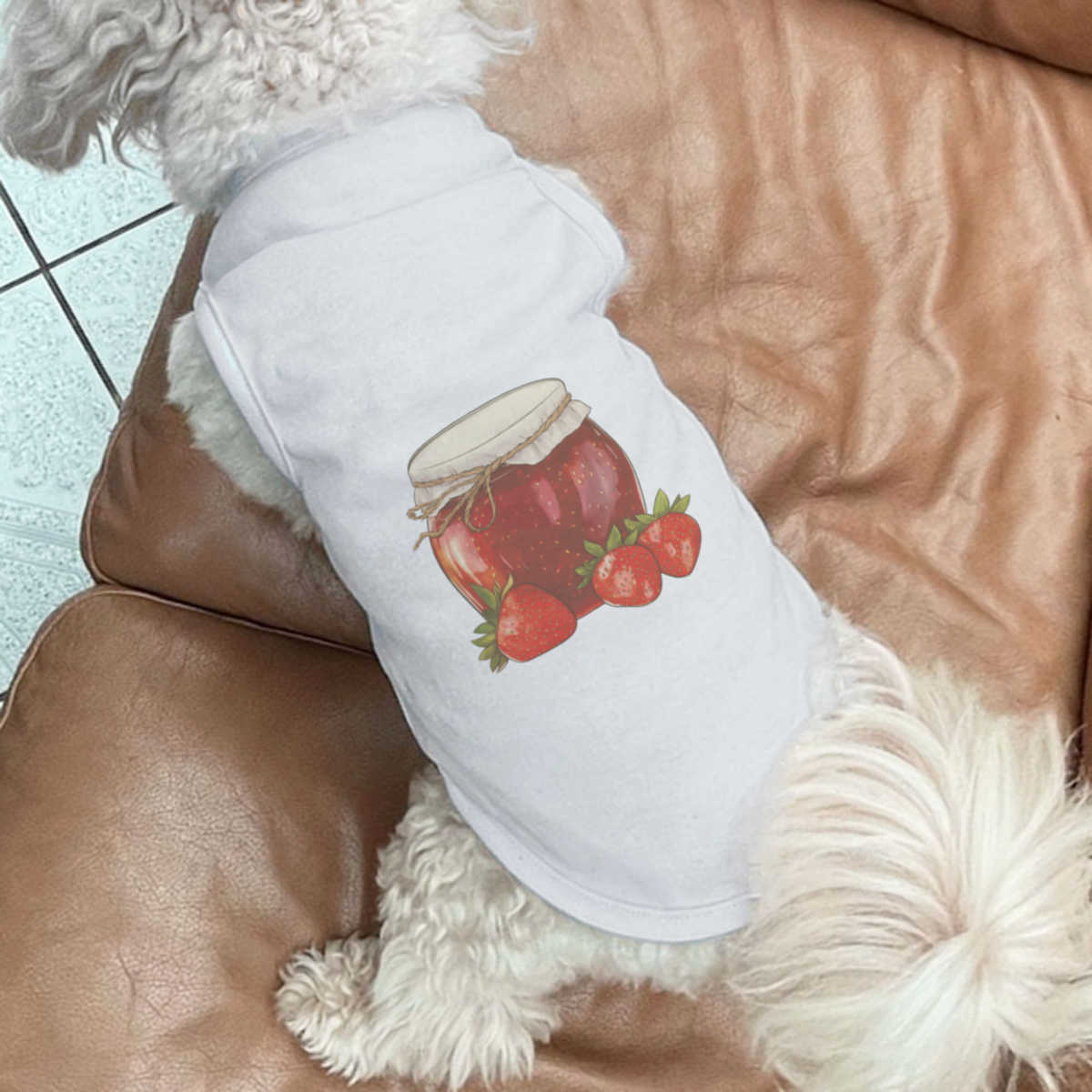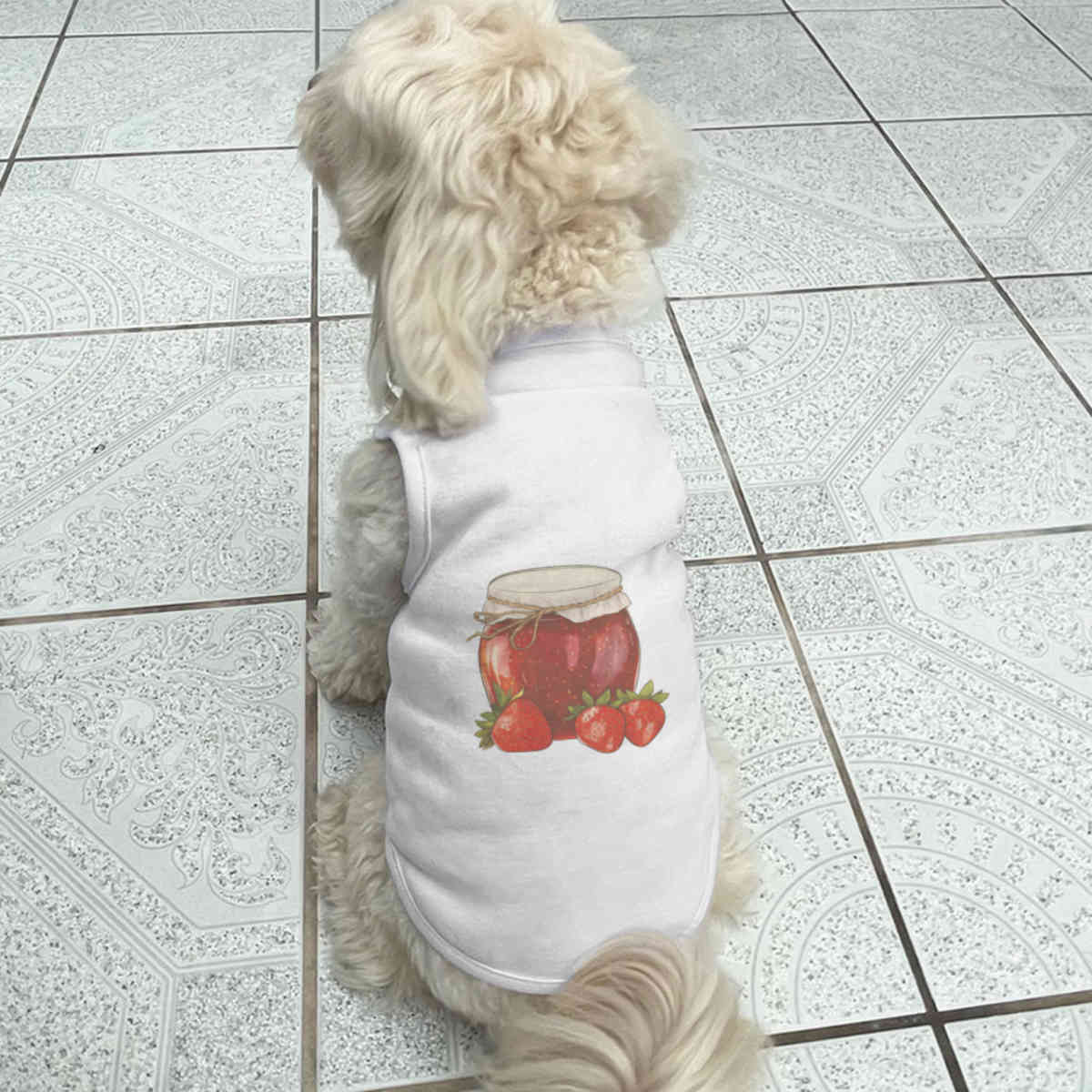 Give your furry friend a fresh new look with this adorable white dog T-shirt, designed to turn heads with its unique print on the back! Made from 100% polyester, it offers a comfortable yet firm stretch, perfect for both playtime adventures and cozy cuddles. Whether your dog loves to play outdoors or cuddle indoors, this T-shirt provides all-day comfort and style.