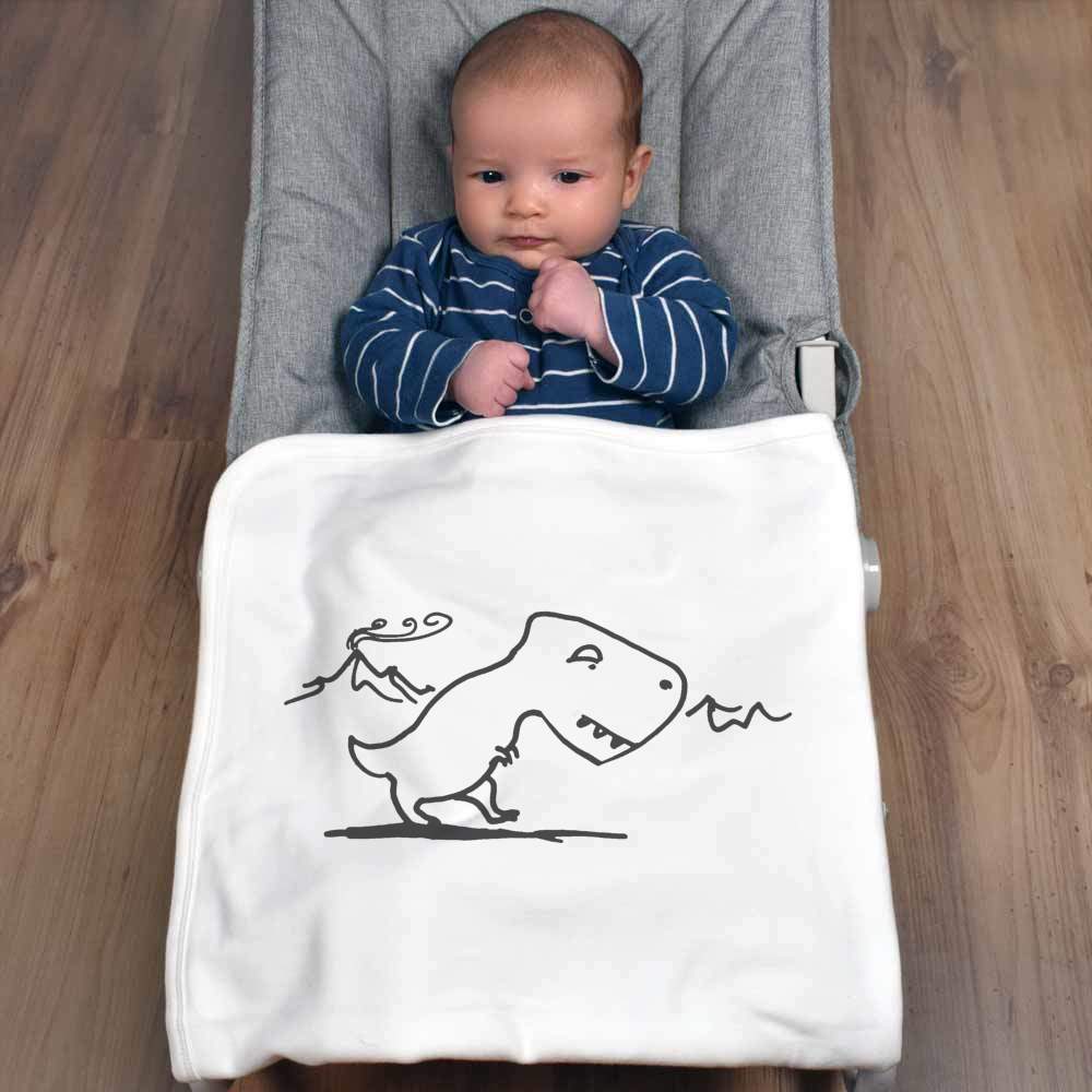 'Stylised T-Rex' Cotton Baby Blanket / Shawl (BY00027415)