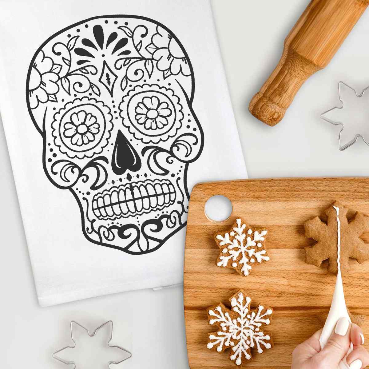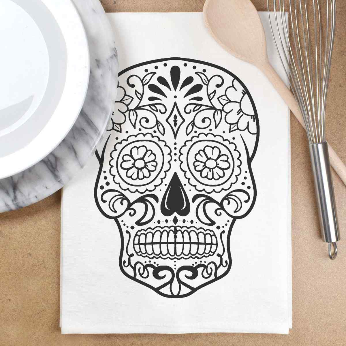 'Sugar Skull' Cotton Tea Towel / Dish Cloth (TW019936)