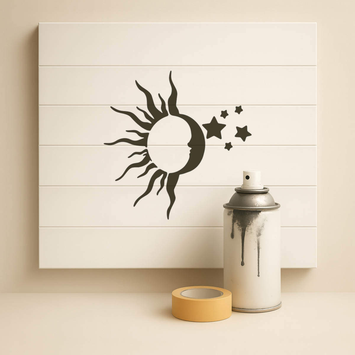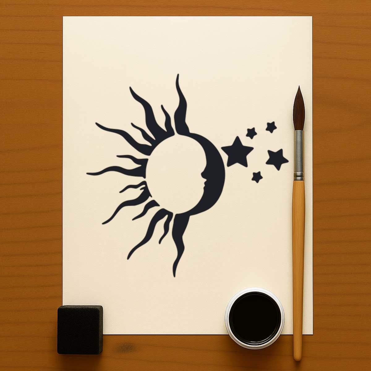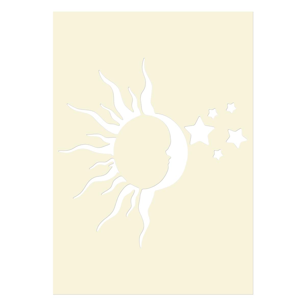 'Sun Moon Stars' Reusable Stencil – Durable Decorative Template for Painting and Spraying on Walls, Tiles, Wood, Fabric & Craft Projects - M (A5) (WS00021672)