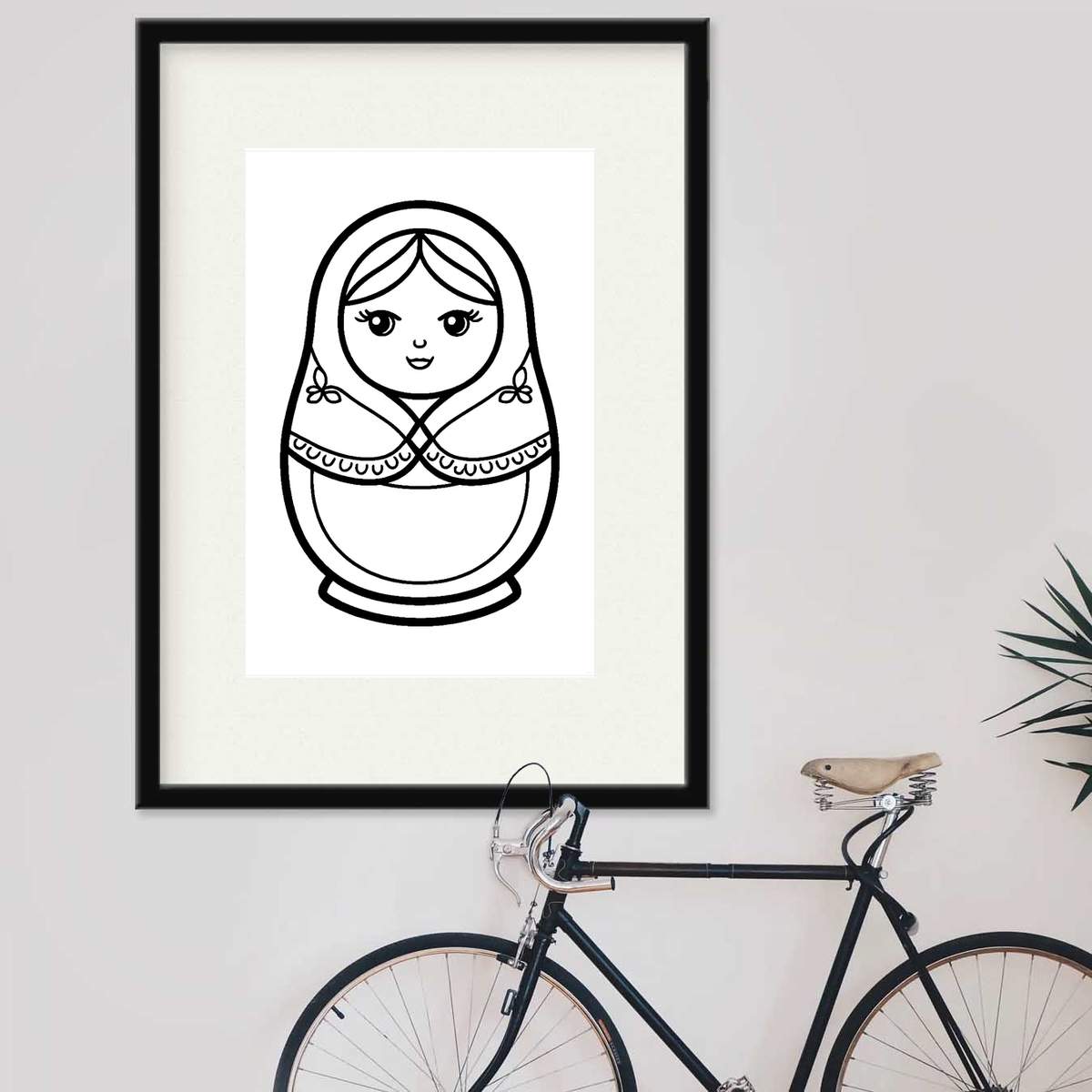 'Line Art, smile, upper body, long hair, hair between eyes, printable coloring pages, matryoshka doll, nesting doll'
