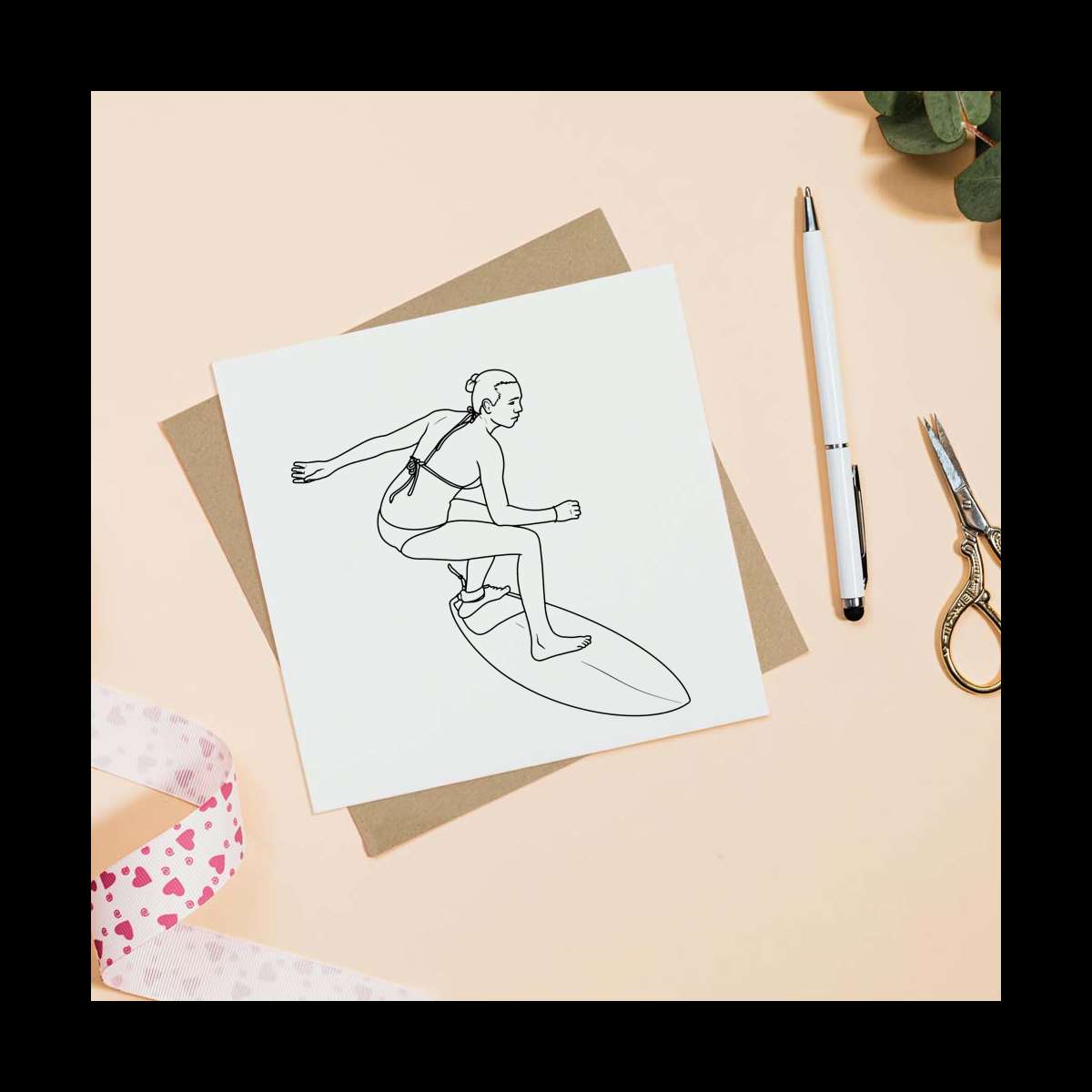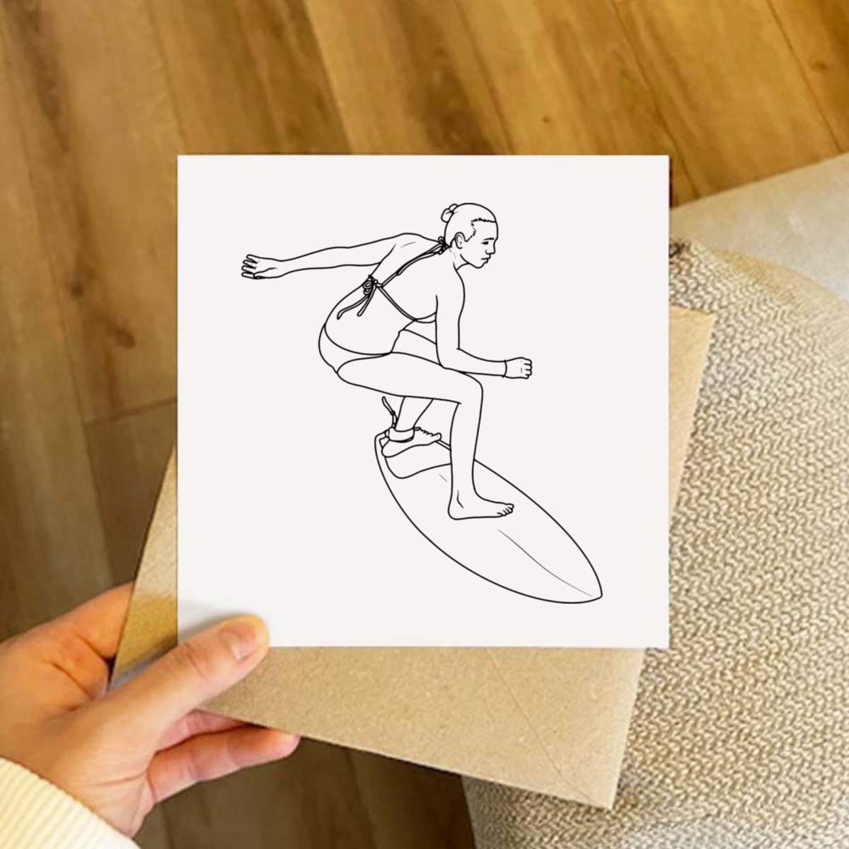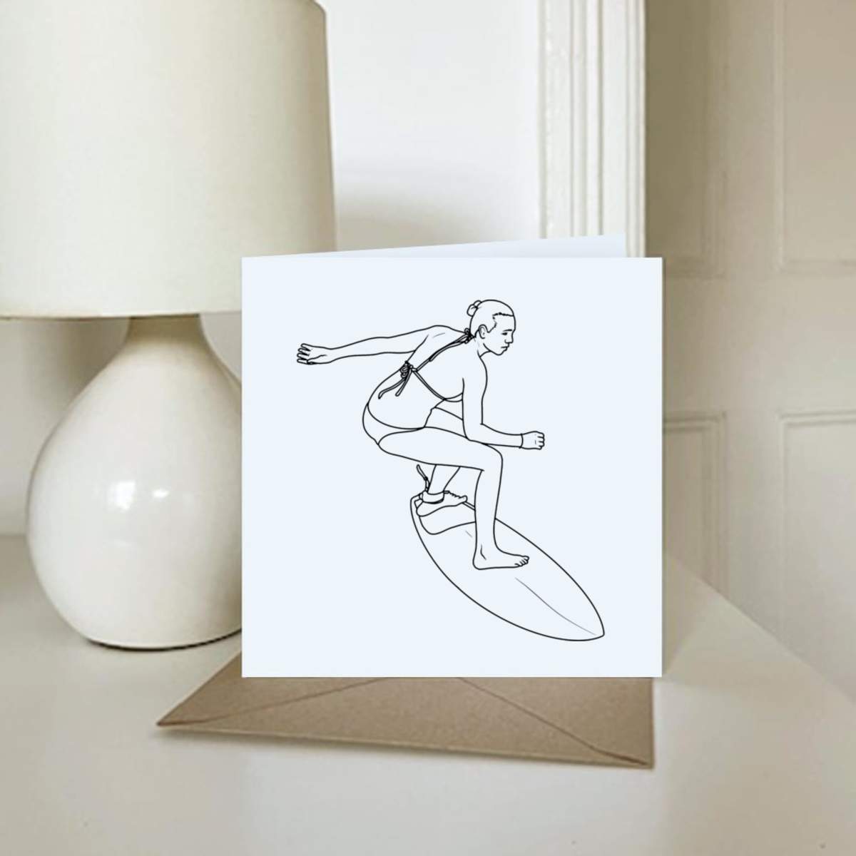 - Square greeting card supplied with a recycled brown envelope