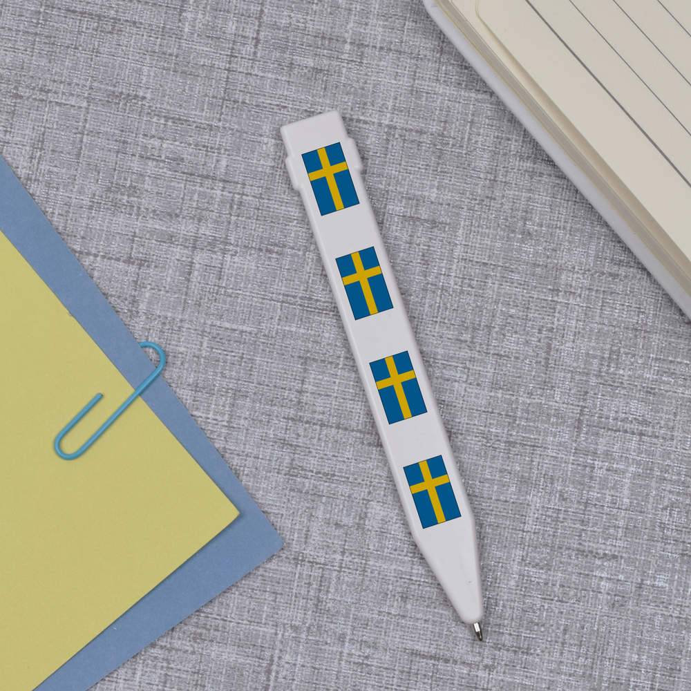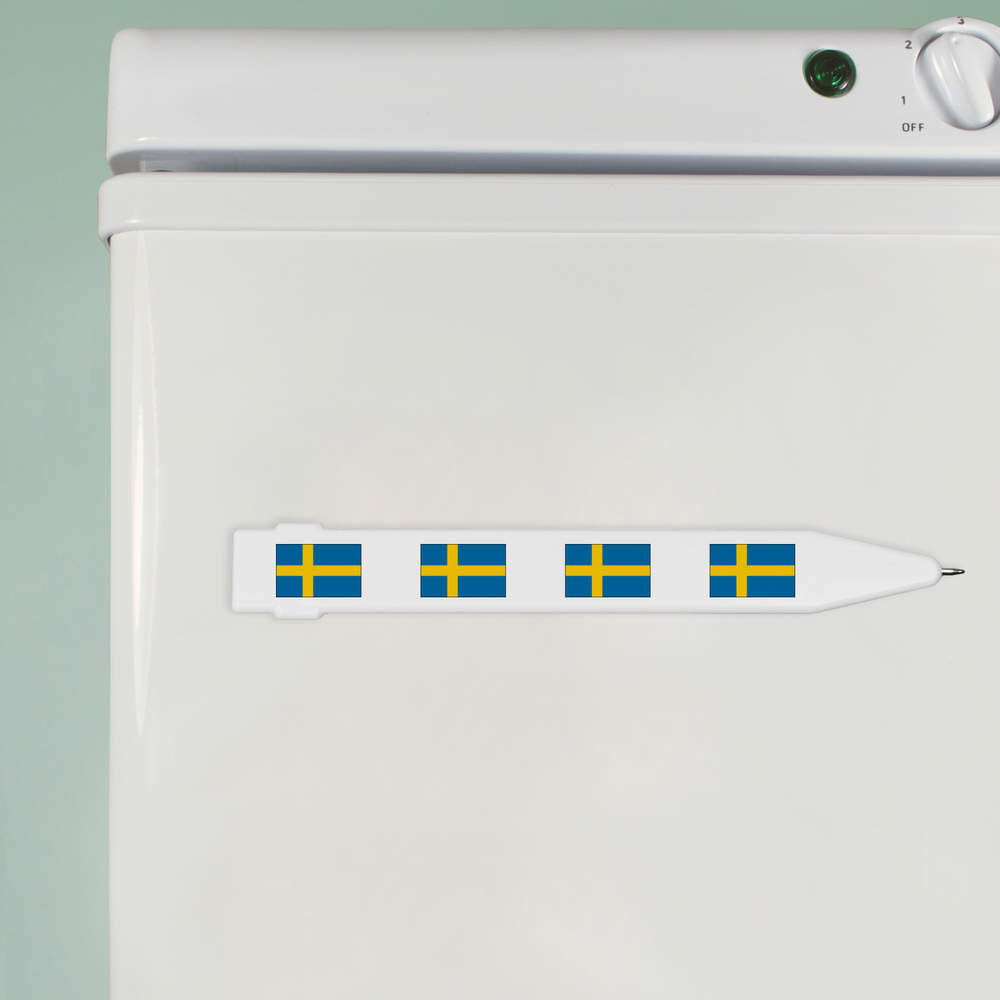 - A flat ballpoint pen with magnetic strip on the back