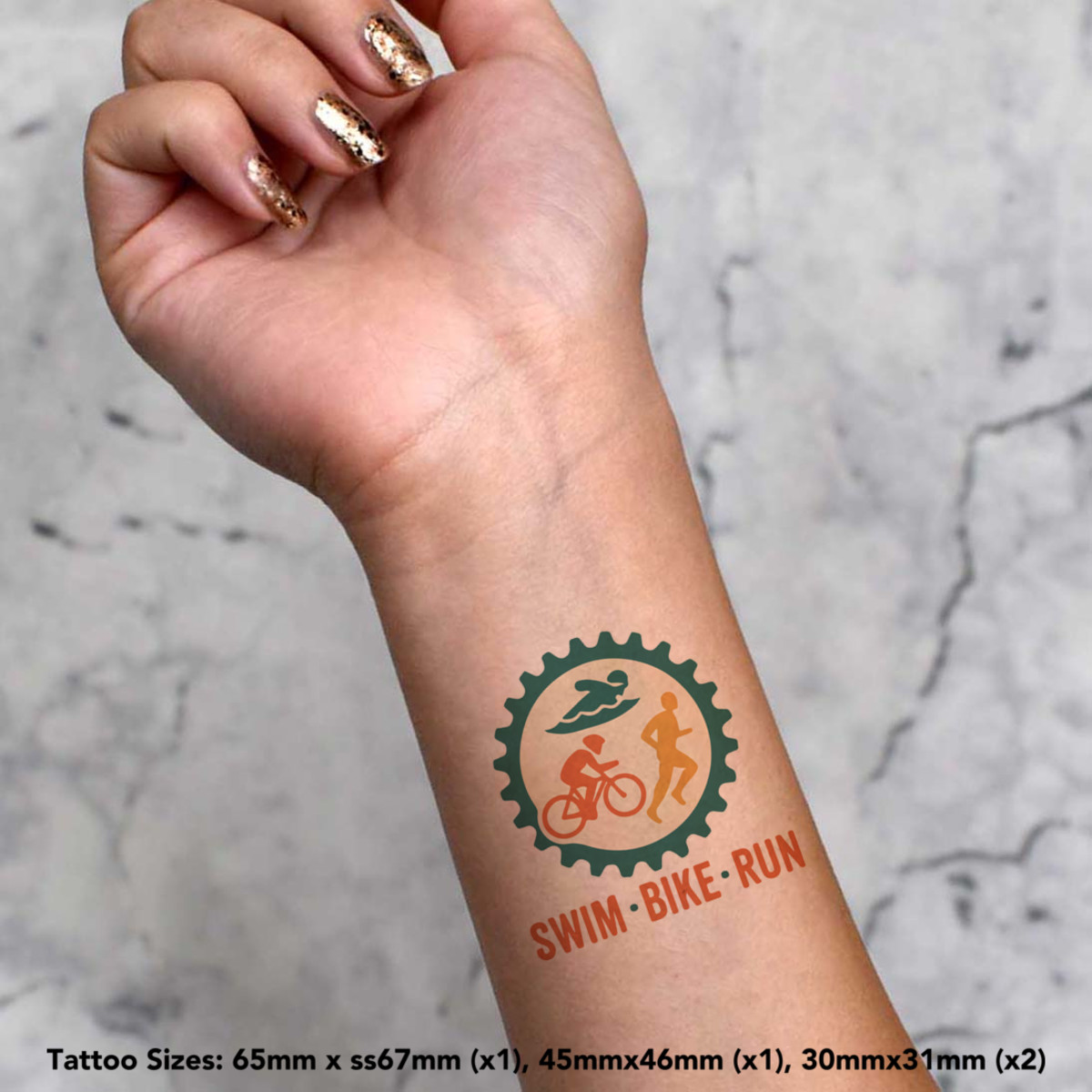 'Swim Bike Run Triathlon' Temporary Tattoos - Water Resistant, Skin-Safe, Non-Toxic Transfers (TO056642)