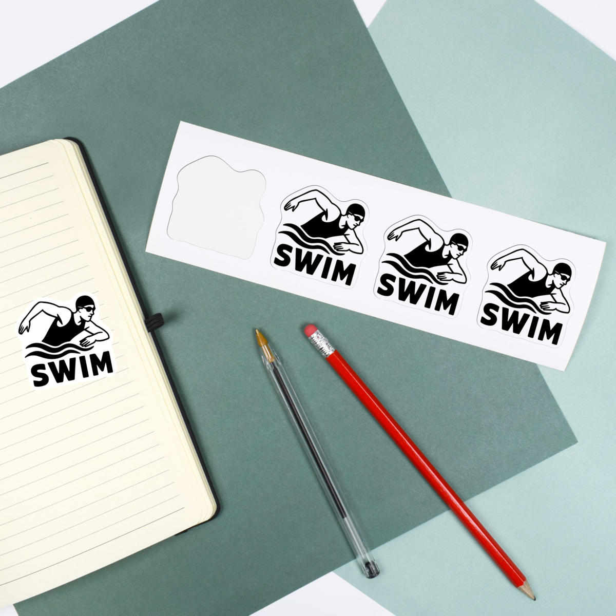 'A dynamic design featuring a swimmer in motion, perfect for aquatic sports enthusiasts and those who love to swim.'