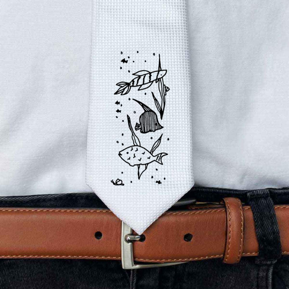 'Swimming Fish' White Tie / Necktie with Gift Box (AT00011956)