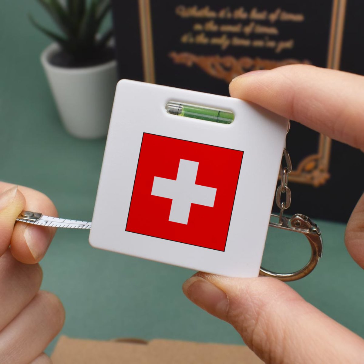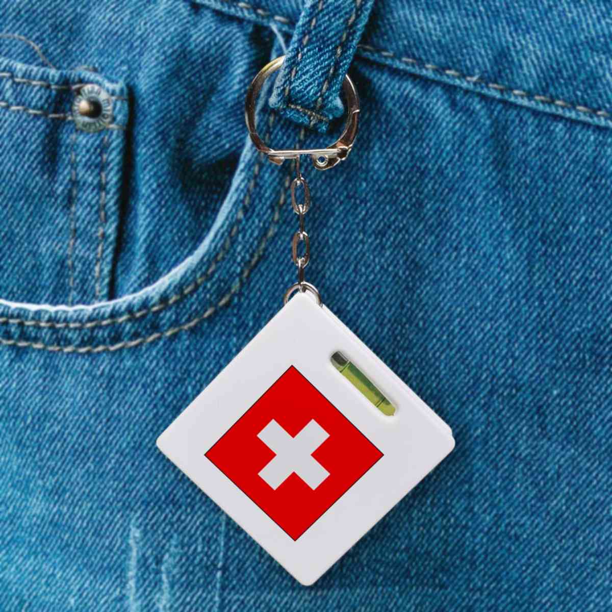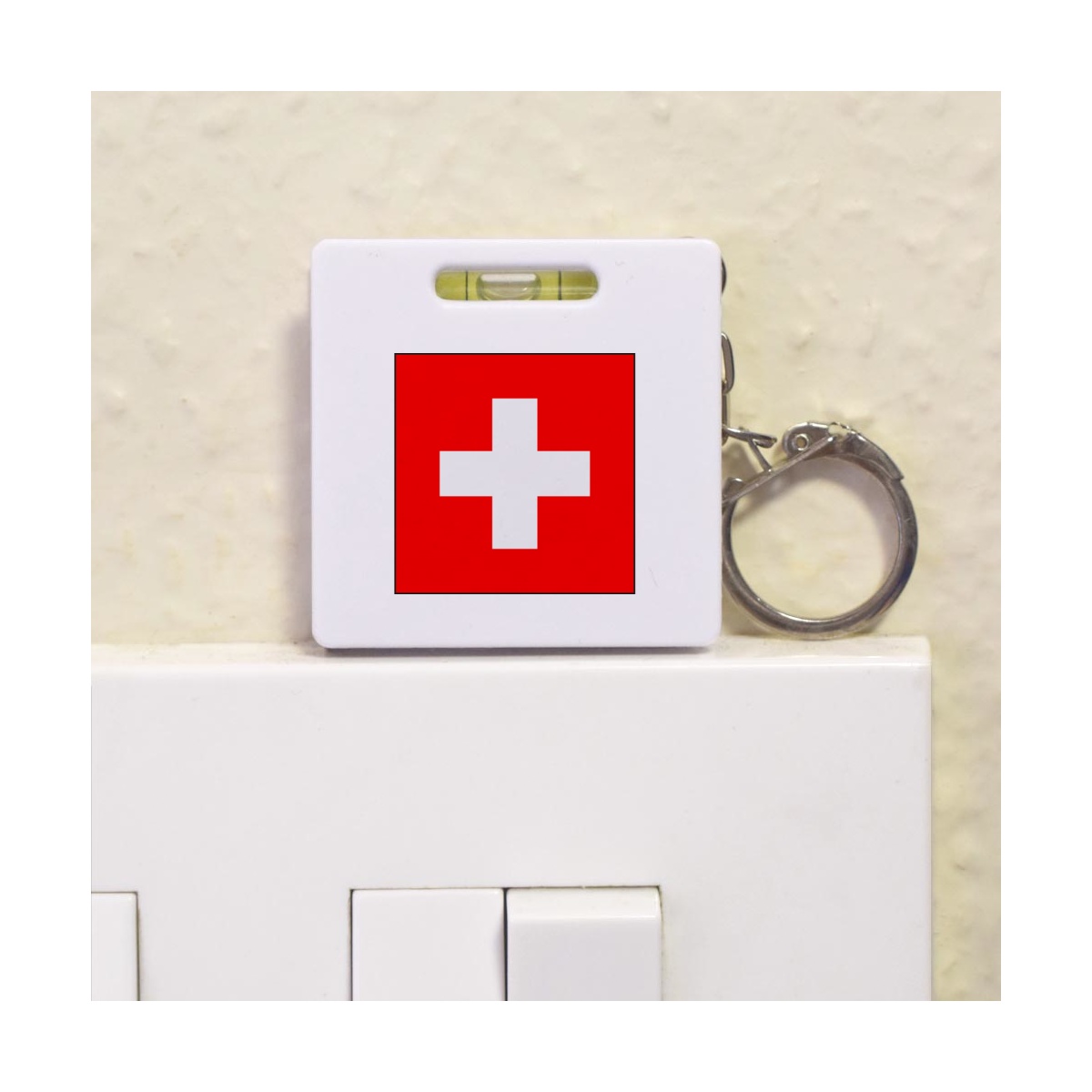 'Switzerland Flag' Keyring Tape Measure / Spirit Level Tool (KM00014815)