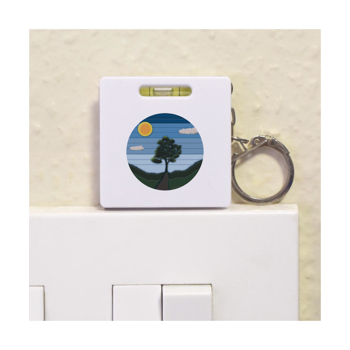This multifunctional tool offers both a tape measure and spirit level in one handy little accessory. The retractable, 1 metre tape measure has both imperial and metric units, while the flat edges around its plastic casing provide the ability to check both vertical and horizontal surfaces with a mini spirit level. The compact and lightweight design makes it easy to carry around; simply attach with the keychain provided and whip it out when needed. Each keyring tape measure tool is printed on one side with a unique design.