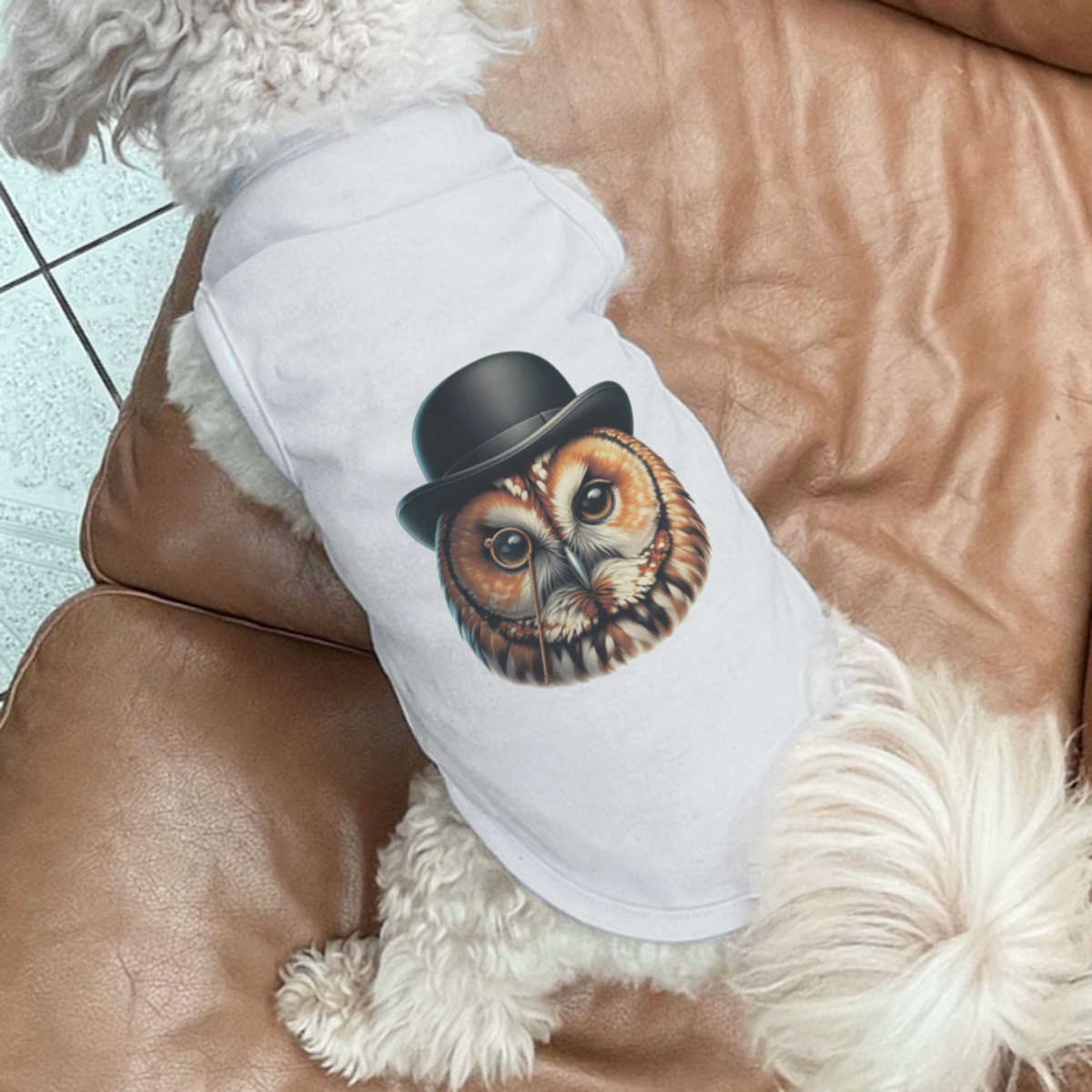'Illustration of a Tawny Owl Wearing a Bowler Hat and Monocle'