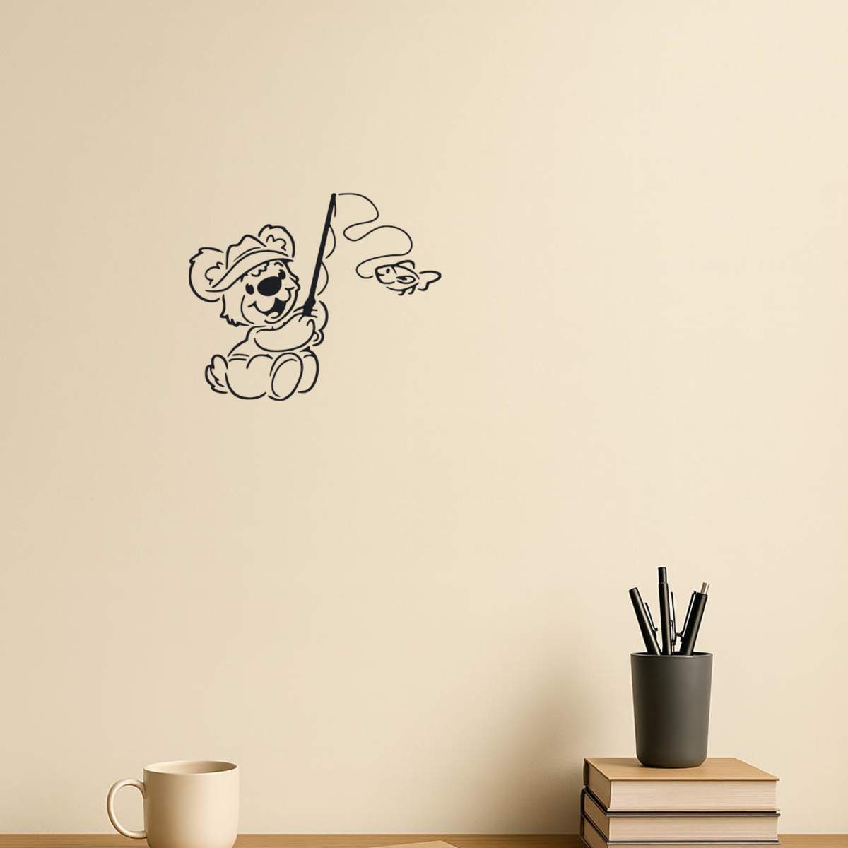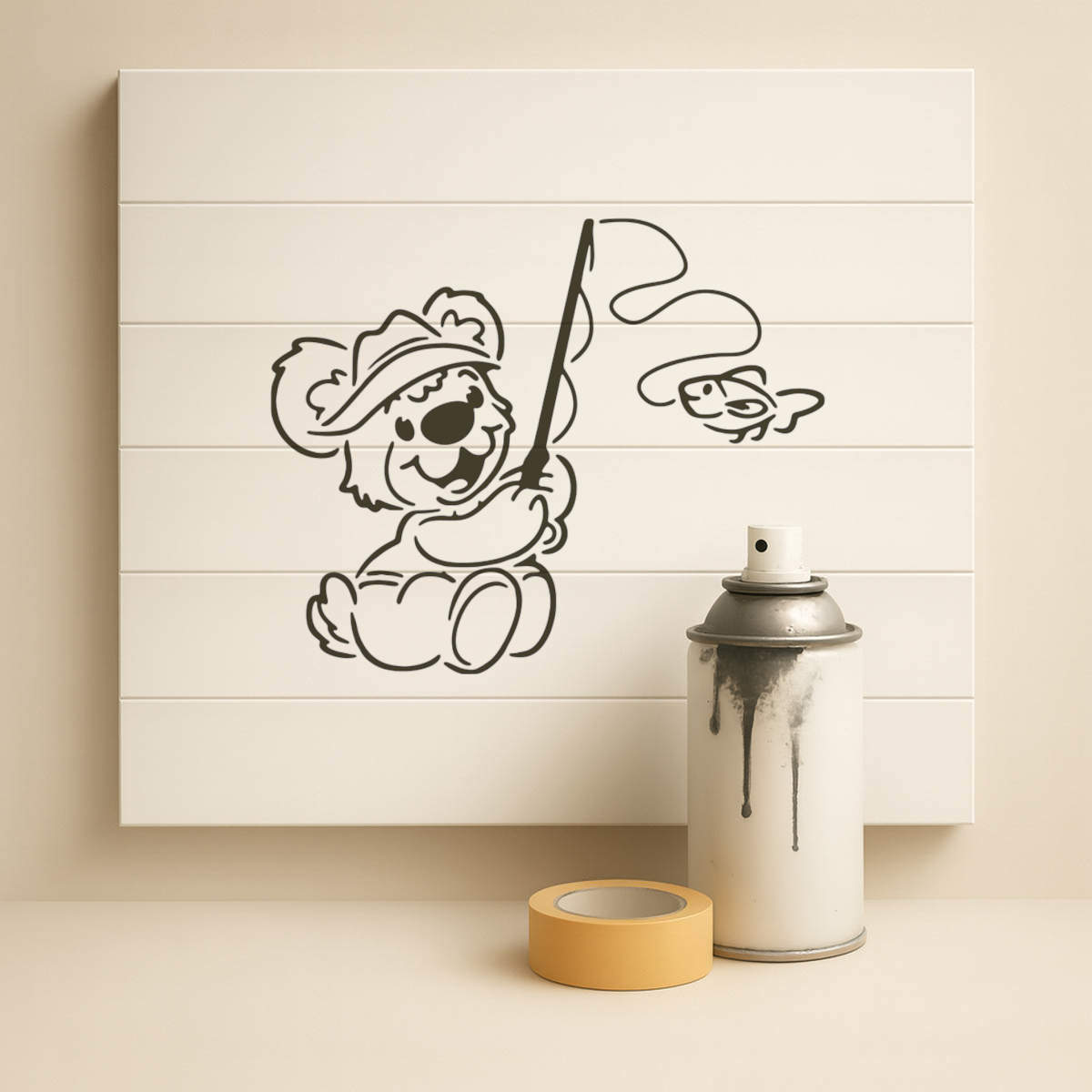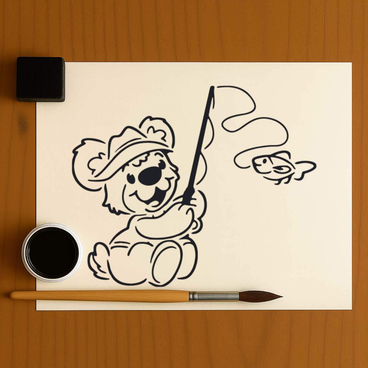 'Teddy Bear Fishing' Reusable Stencil – Durable Decorative Template for Painting and Spraying on Walls, Tiles, Wood, Fabric & Craft Projects - M (A5) (WS00001976)
