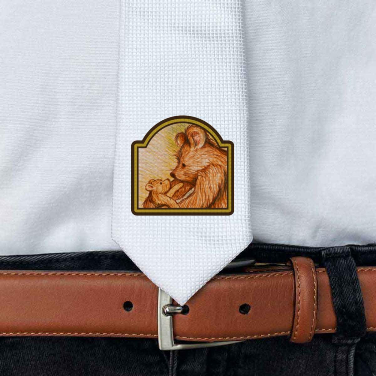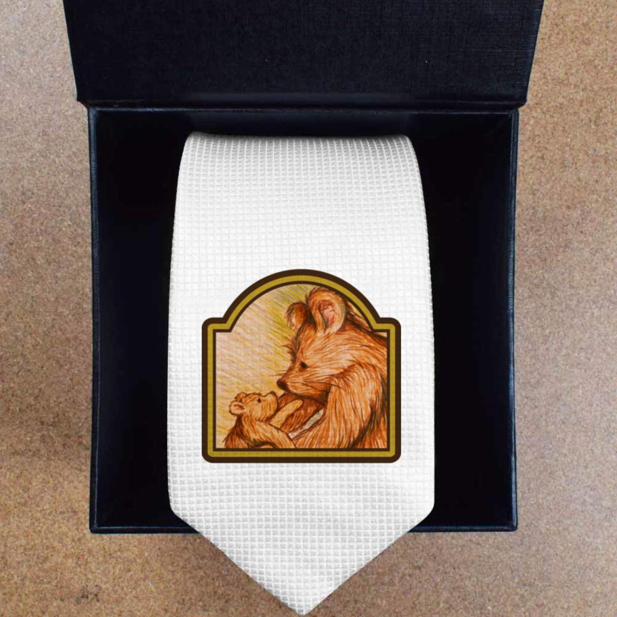 'Teddy Bear Mother & Cub' White Tie / Necktie with Gift Box (AT00012558)