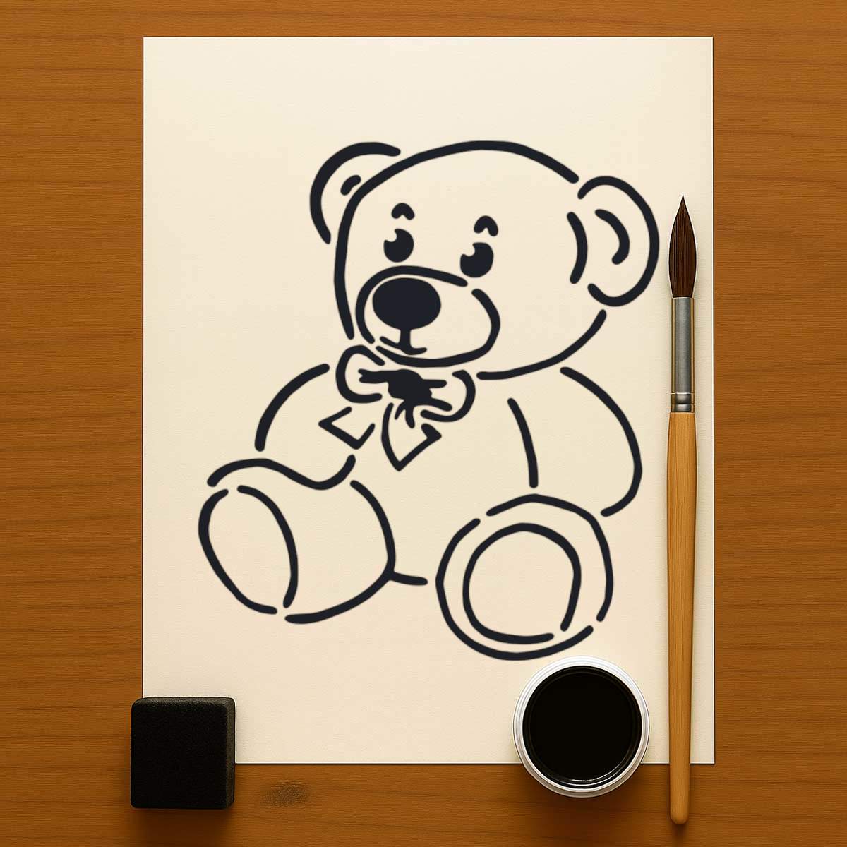 'Teddy Bear' Reusable Stencil – Durable Decorative Template for Painting and Spraying on Walls, Tiles, Wood, Fabric & Craft Projects - M (A5) (WS00048529)
